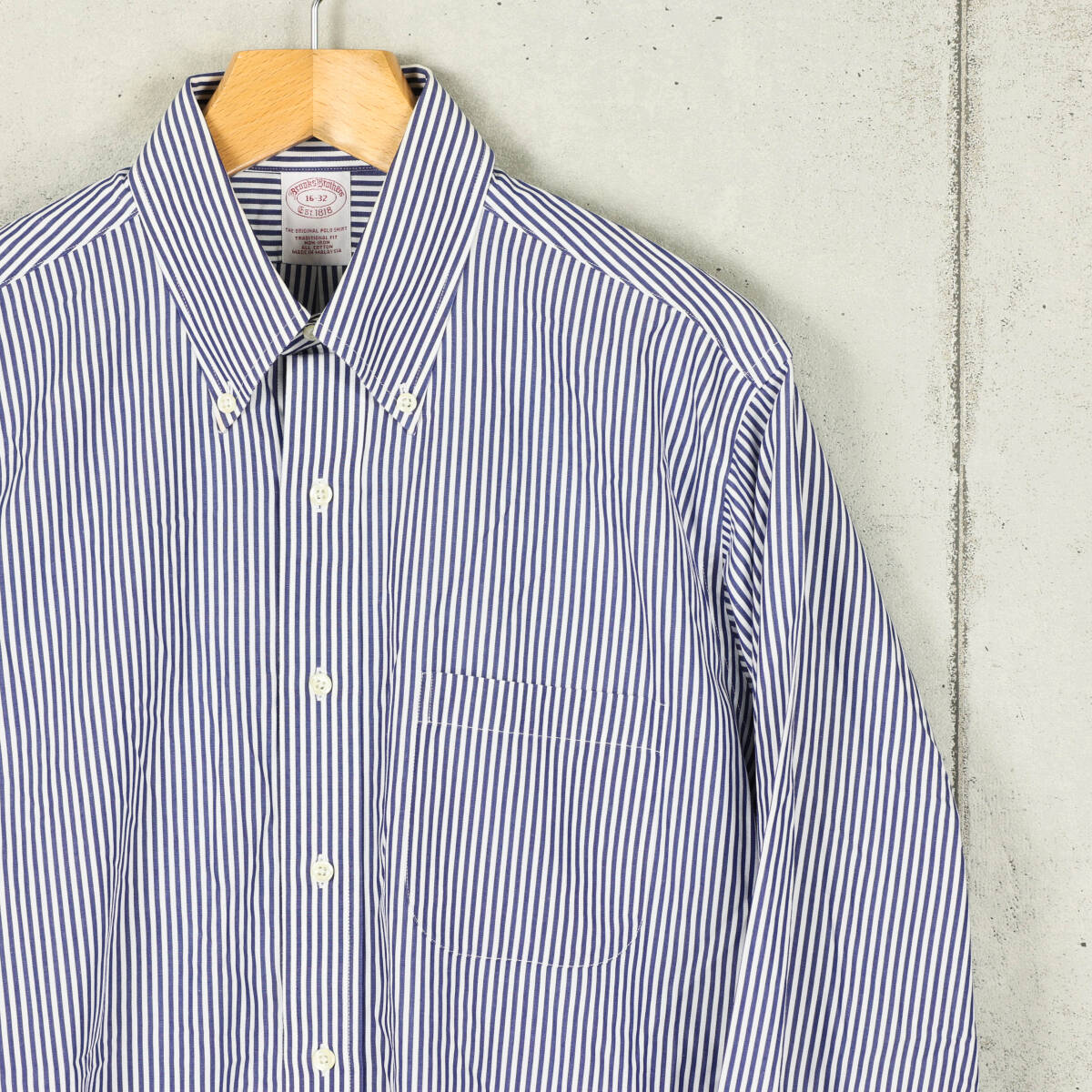 | 【ブランド】 Brooks Brothers / ブルックスブラザーズ 【アイテム】 ストライプ ボタンダウンシャツ 【商品説明】 アメリカで購入しました、ブルックスブラザーズのストライプ柄のボタンダウンシャツになります。 【カラー】 ネイビー×ホワイト 【コンディション】 使用に伴う色落ちや擦れなどがあります。 【サイズ】 サイズ:16-32 身幅:63cm 肩幅:49cm 着丈:83cm 袖丈:58cm | |||