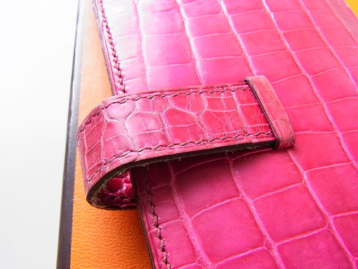 ジップ式の小銭入れ付き。 破れや破損はございません。 ピンクのクロコのHERMES長財布はとても貴重な品物です。
