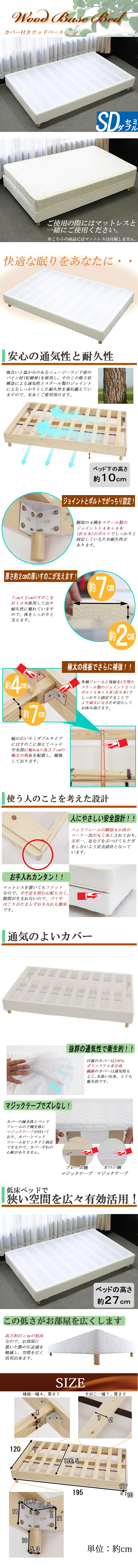 | 商品名 | ウッドベースベッド カバー付き 木製 ベッドフレーム ロータイプベッド 低床ベッド すのこベッド すのこ ベッド パイン材 フラット セミダブル cjs01 |