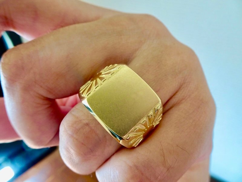 ごらん頂きありがとうございます。 オリジナルブランド 仁尾彫金『k18ゴールド太陽の印台リング』を出品致します。オリジナルのアクセサリーを自ら制作しています。今回、幅1.8cm弱のシンプルな印台リングの両サイドに、太陽のモチーフを立体的に表現致しました。印台部分はつや消し加工しています。全て金の塊でk18を約52gとズッシリと大胆に使用しています。全て金の塊なので永久にゴールドに輝き続けます!! オリジナリティを追求しデザイン、制作を私自身で行っている為、今回、新品をご用意致します!! *こちらの作品につきまして14号から30号まで制作可能でございます。 *こちらの作品につきまして制作に3週間程度かかります。m(_ _)m k18イエローゴールド 約52g (k18 刻印あり) ご質問等ございましたらお気軽にaerothmith@mac.comへご連絡下さい。m(_ _)m インスタにて仁尾彫金で制作状況を掲載していますのでお気軽にご登録をお願い致します。(^-^) 金プラチナにつきましてはフルオーダー制作も承っていますので、ご質問等ございましたらお気軽にaerothmith@mac.comへご連絡下さい。m(_ _)m その他も出品していますのでご覧下さい。m(_ _)m |
