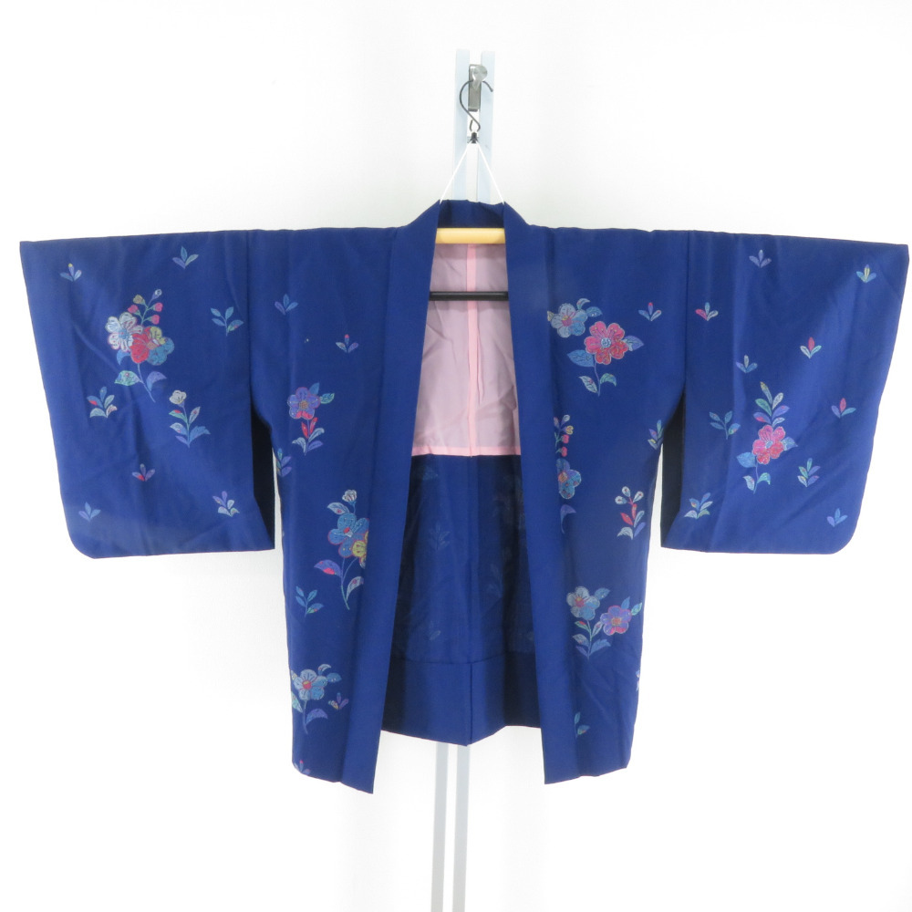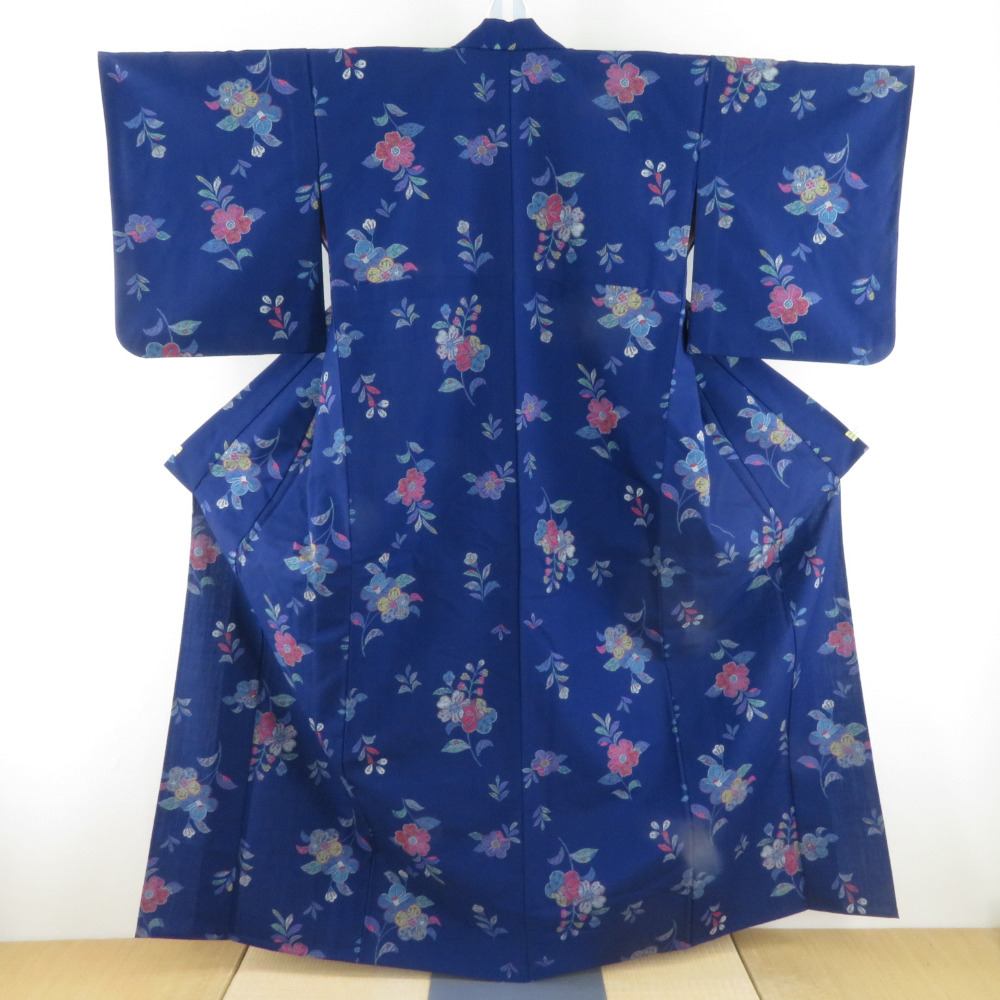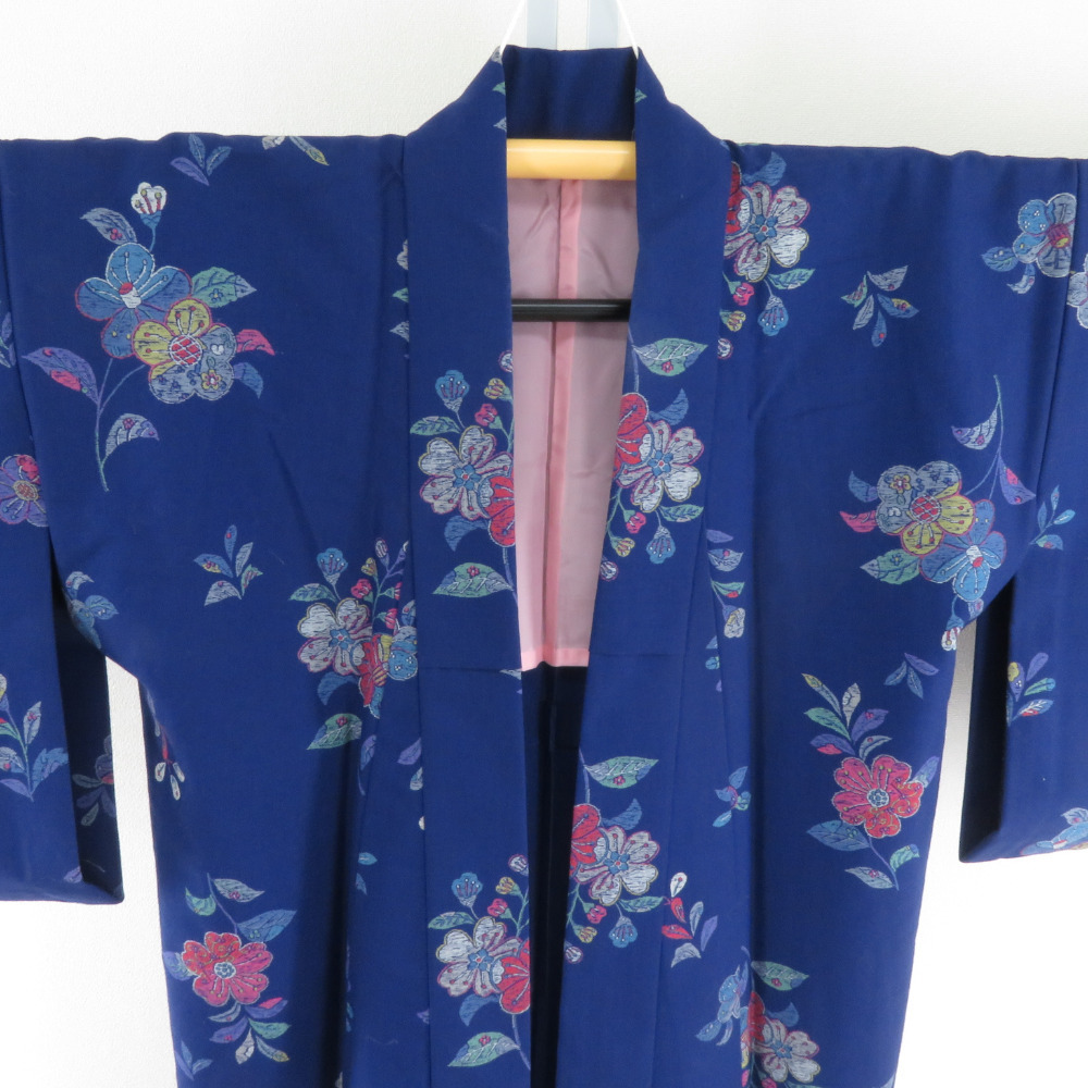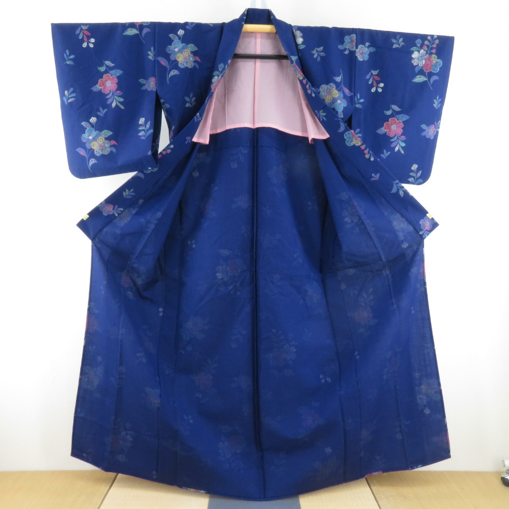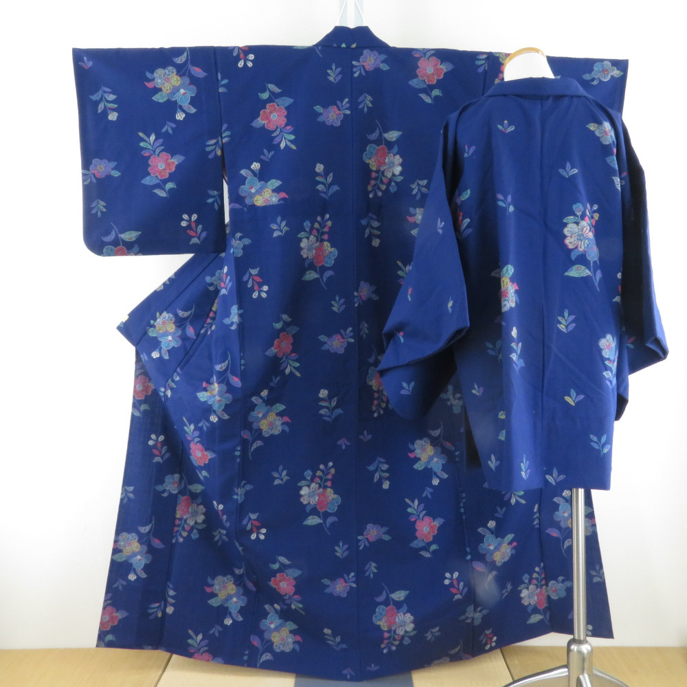 | ウール着物 アンサンブル 羽織セット 花柄 単衣 紫色 バチ衿 カジュアルきもの 仕立て上がり 身丈159cm |