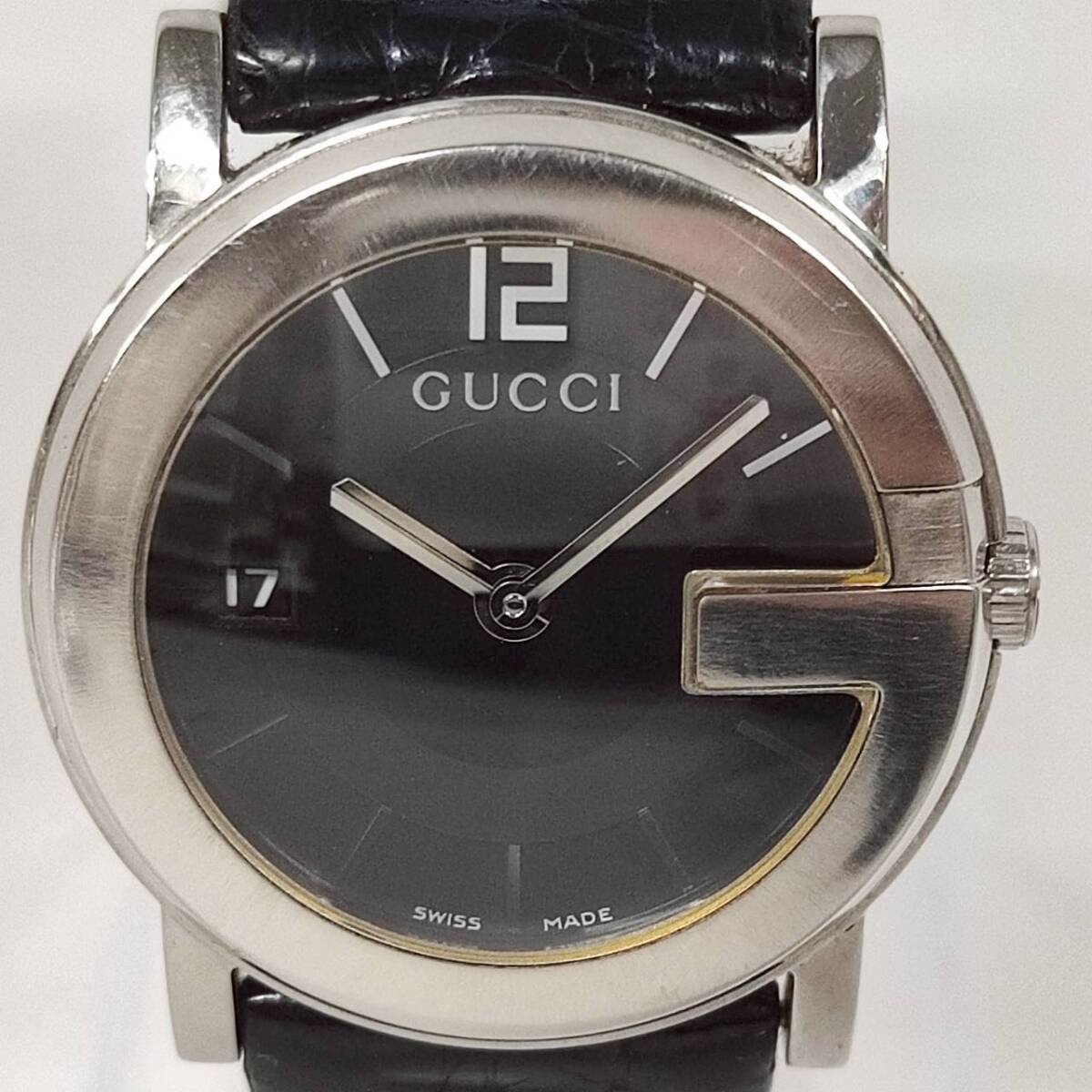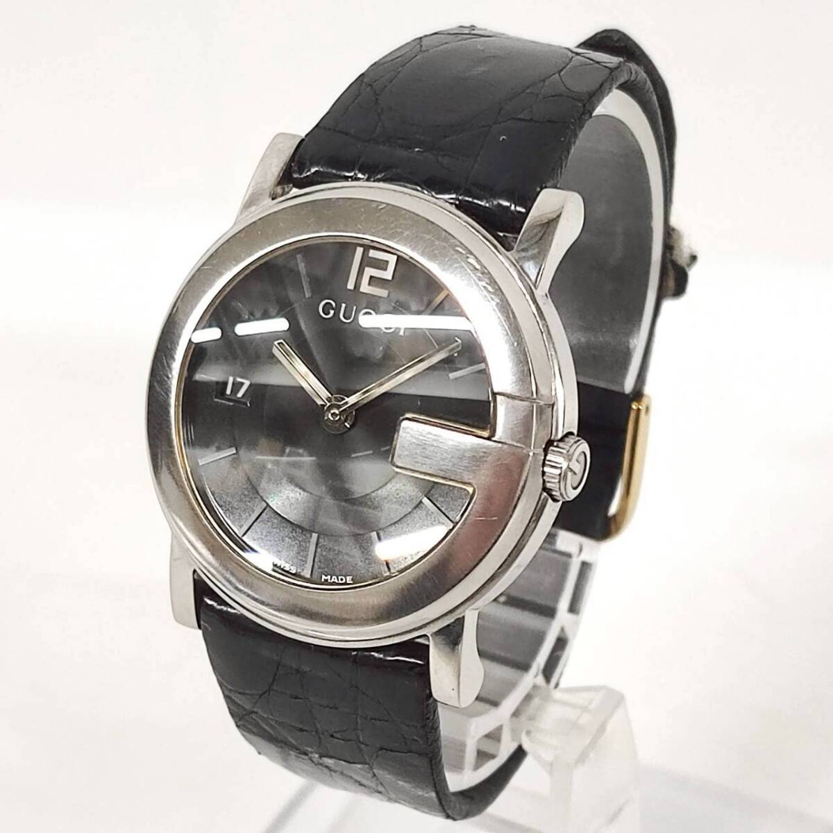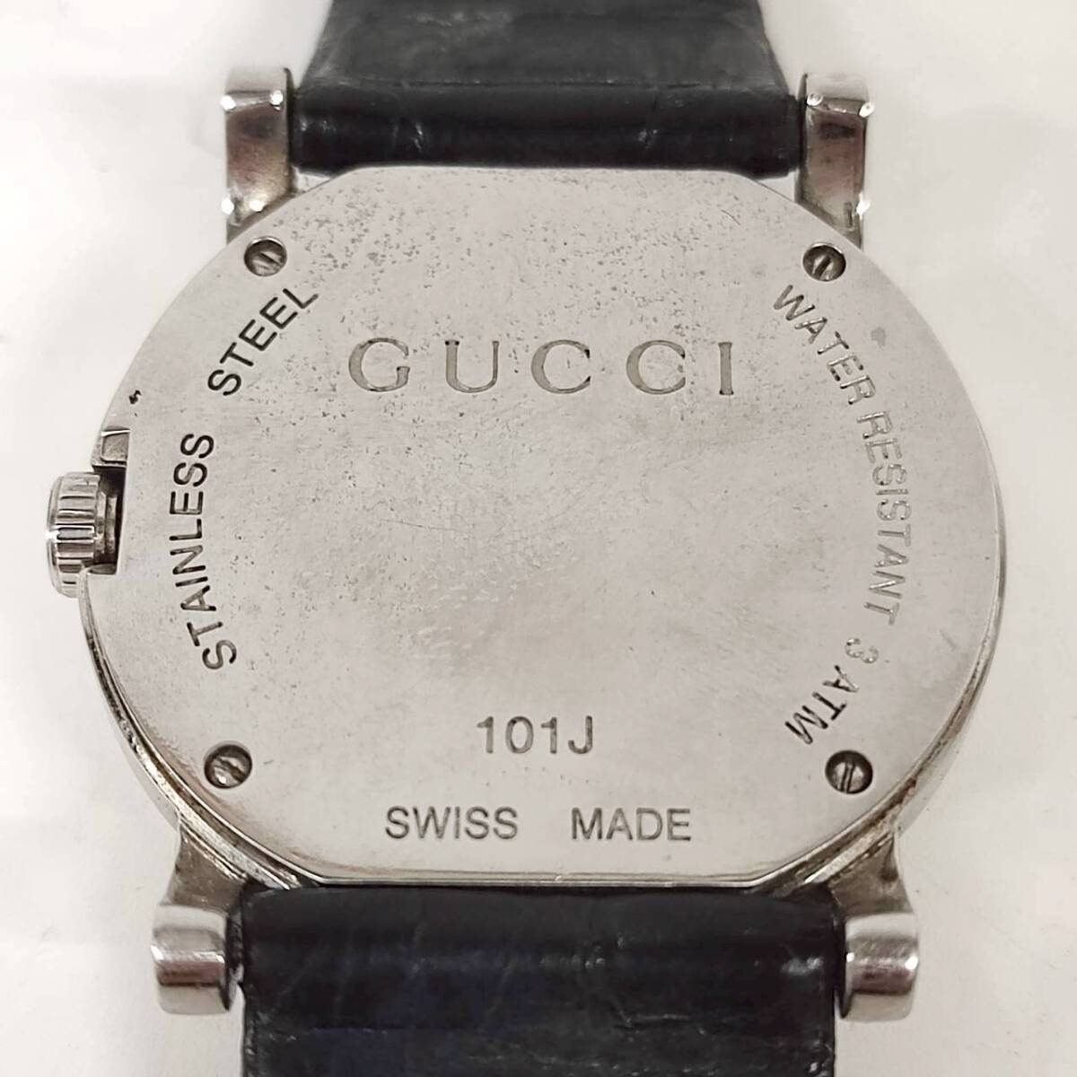 1円~【動作未確認】グッチ GUCCI 101J クォーツ メンズ腕時計 ブラック文字盤 ラウンド デイト 2針 K101588