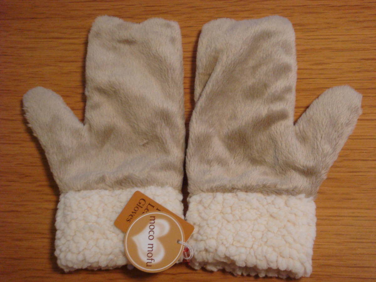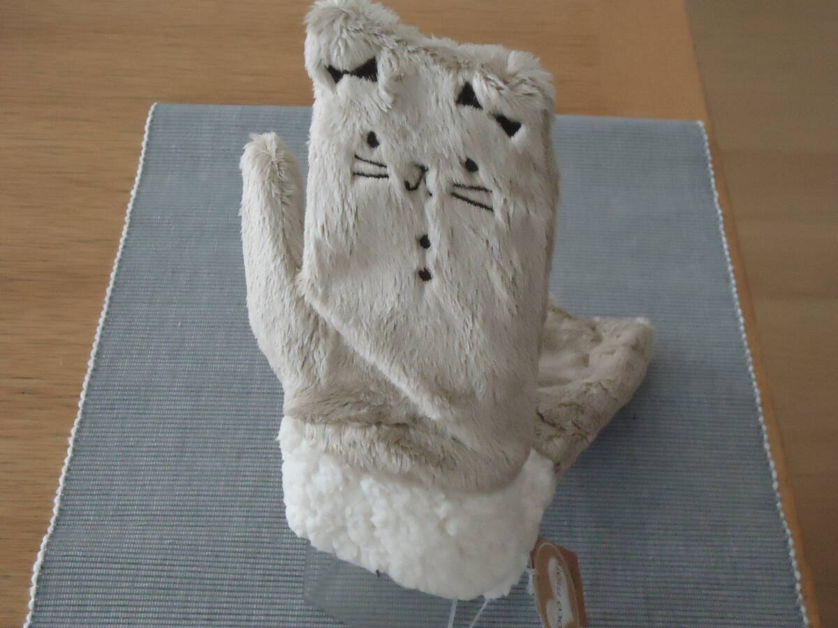 ★猫顔もこもふミトン手袋★新品★ベージュ★