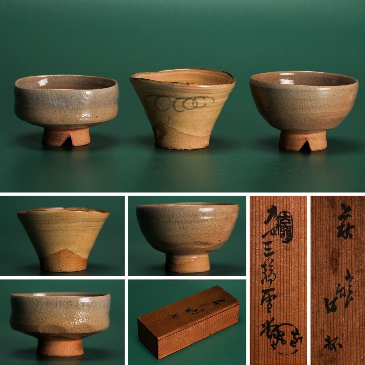九代 三輪休雪(雪堂) 萩焼酒杯 三客 共箱 本物保証