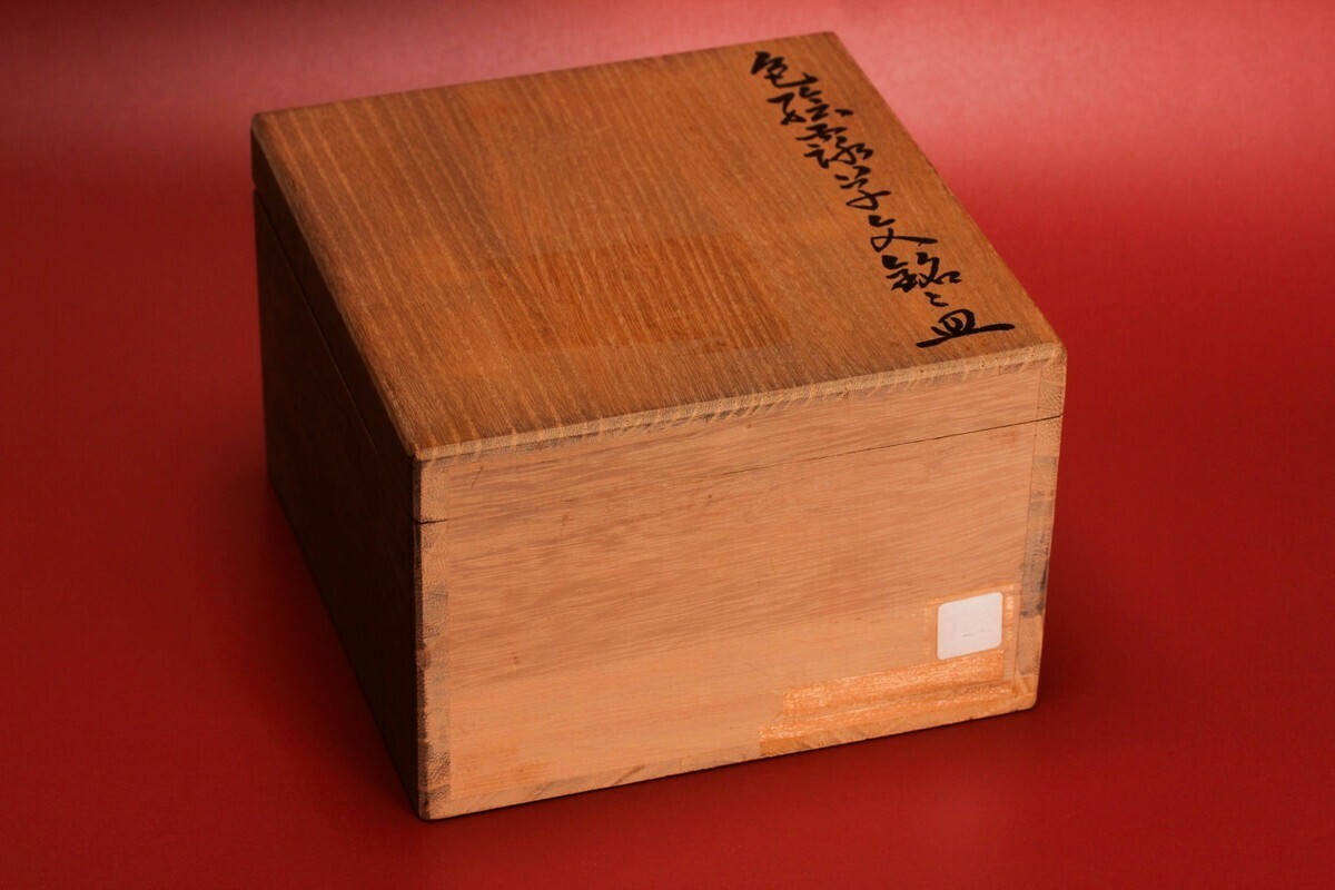 稀に他の作品名・作家名が書き付けられた木箱をお付けしております。誤認防止のため箱書き部分の画像を掲載しない場合もございます。