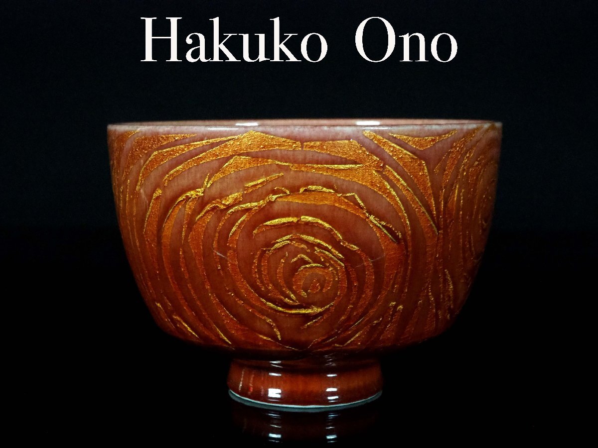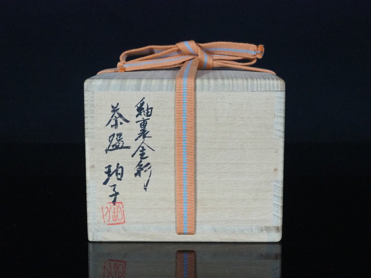 小野珀子 釉裏金彩茶碗 茶道具 共箱 共布 栞 無傷 本物保証!