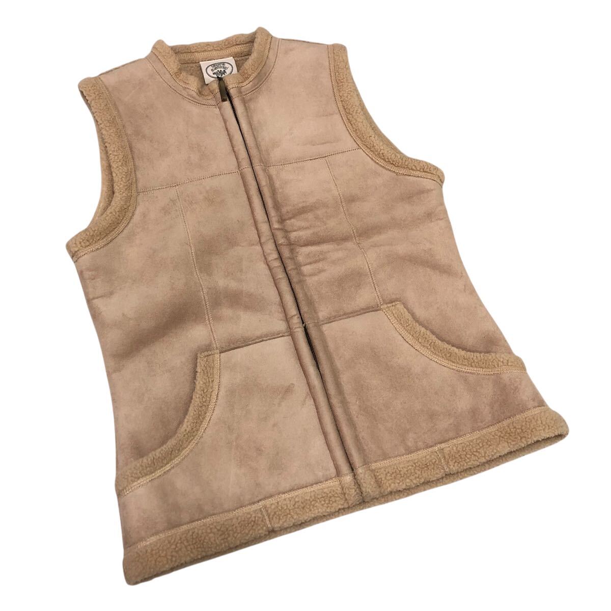 11NG008-84 Laura Ashley ローラ アシュレイ ベスト トップス スエード 裏地 ボア アウター ジップアップ レディース S ベージュ