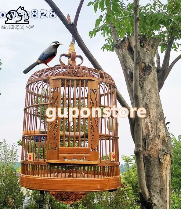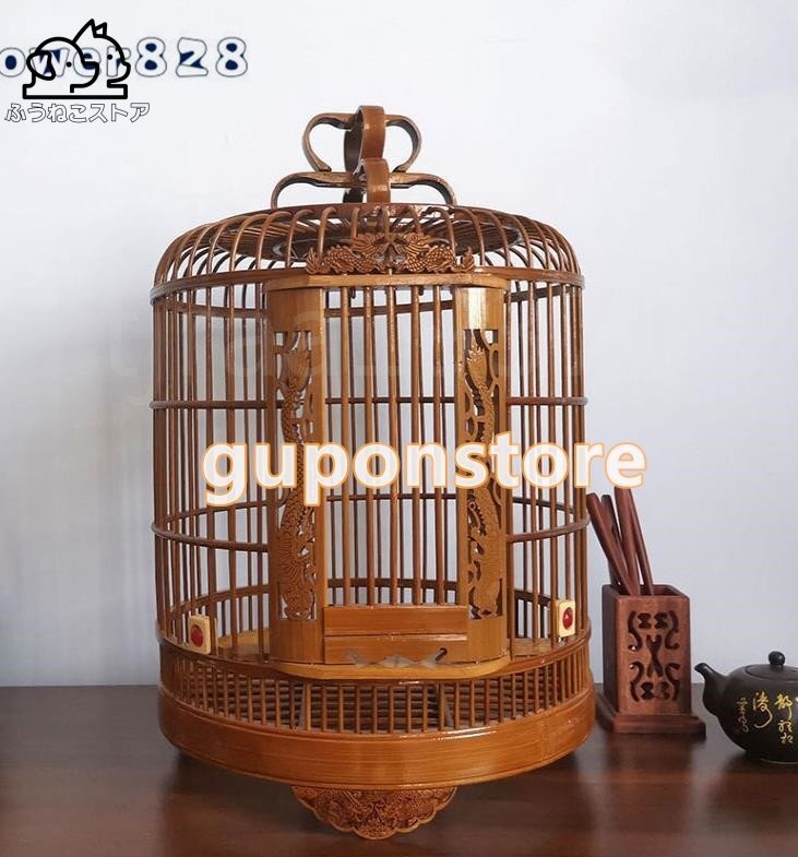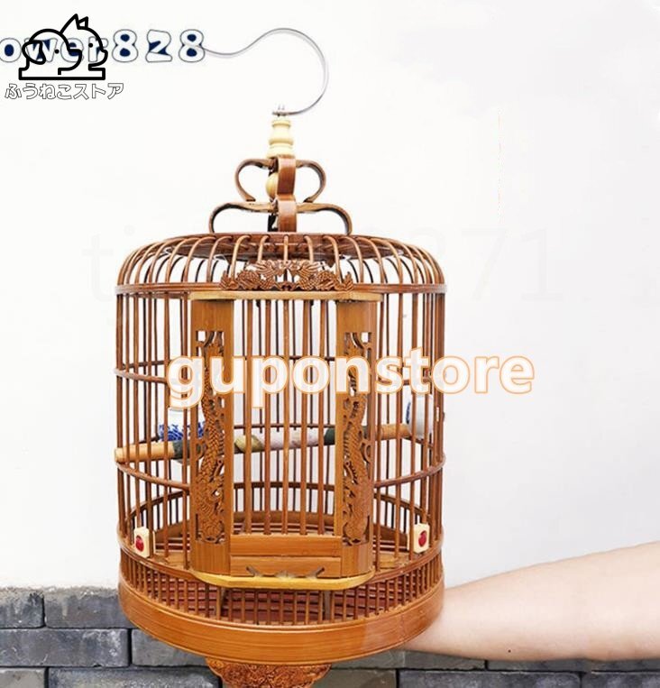 【商品詳細】●状態:新品未使用変形しにくいの老南竹で制作され 、宮庭式伝統工芸品、ドアの周りと底盤周り細かい彫刻 、手作り竹丸鳥籠。工芸品として、観賞ものとして、実用ものとして どっちでも抜群です!フックがついているので簡単にどこでも吊り下げられます。 もちろ