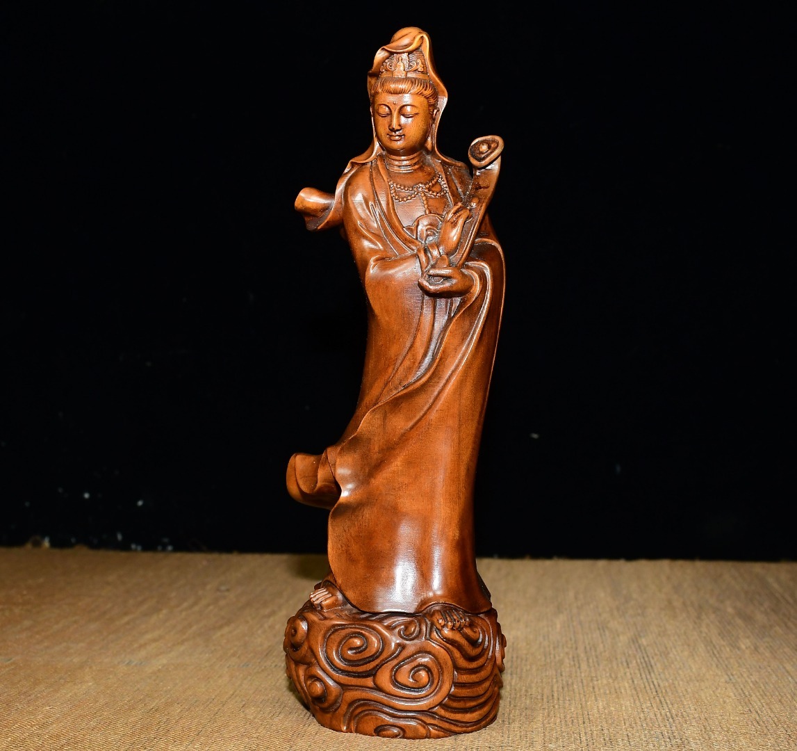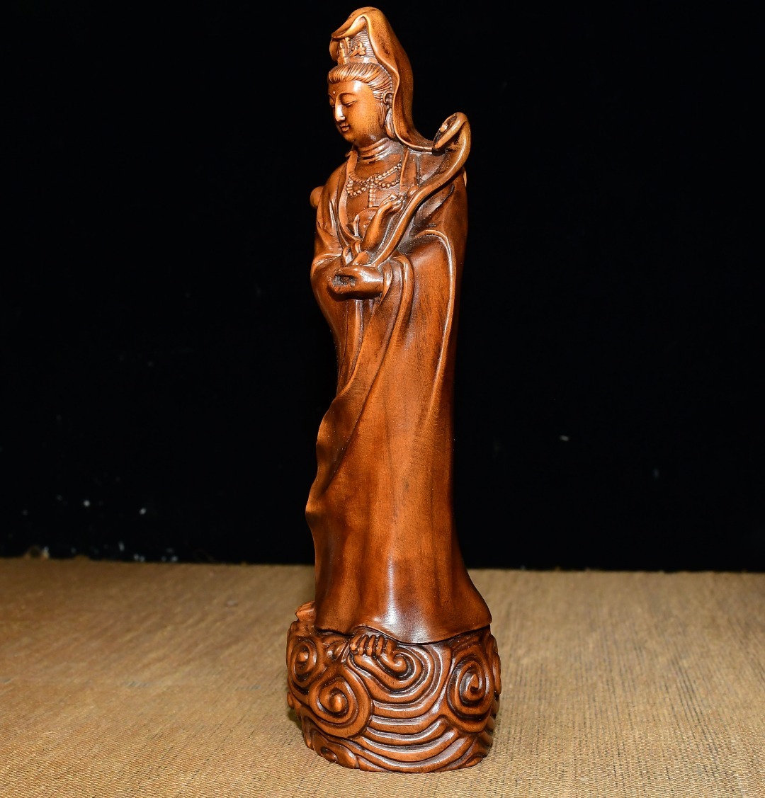 【超珍館蔵】黄楊木製 細密彫 觀音 文房具 書道品 置物 賞物 古賞物 古董品 古美術品 時代物 旧家蔵出 稀少珍蔵品110517