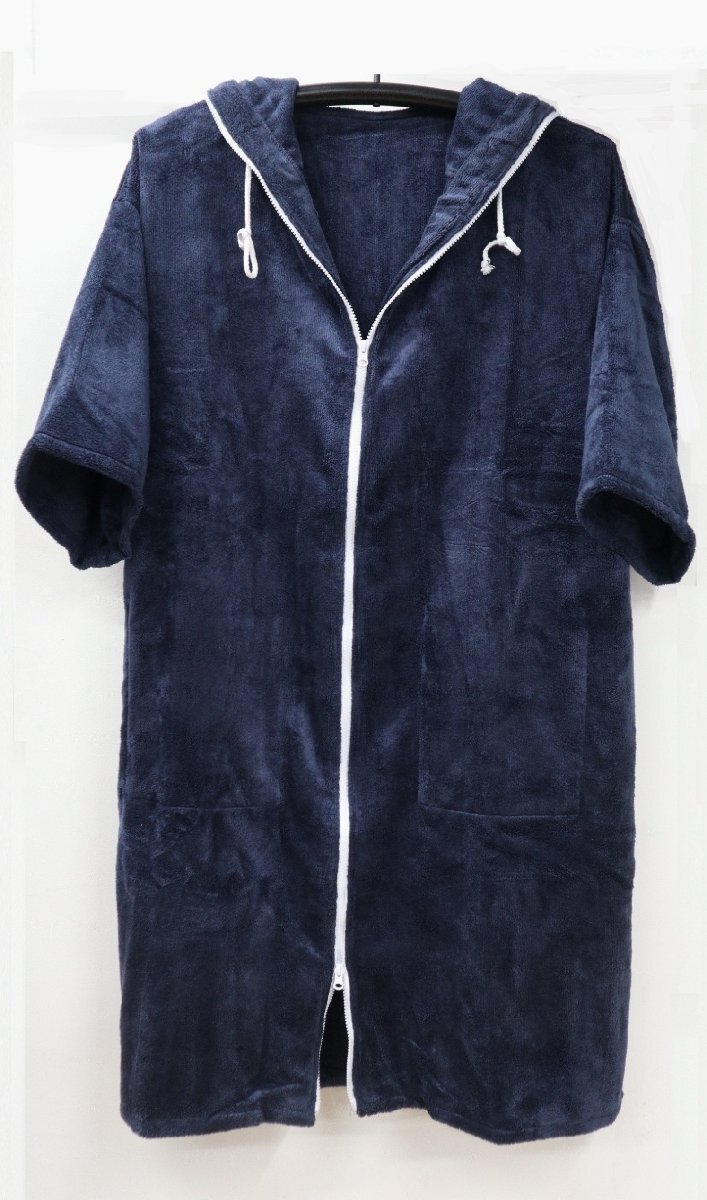 ![]() | 柔らかで肌触りのよいマイクロファイバー(吸水性に優れあたたかい)生地を使用したポンチョ。 フロント(上下開閉)ジップ。 |