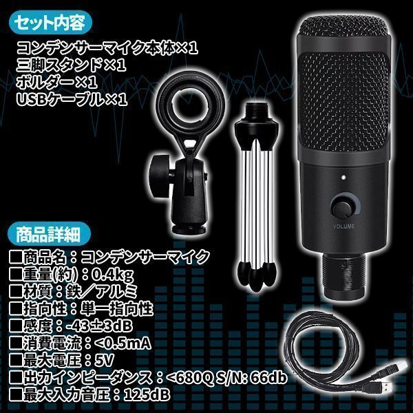 セット内容:コンデンサーマイク本体*1、三脚スタンド*1、ボルダー*1、USBケーブル*1