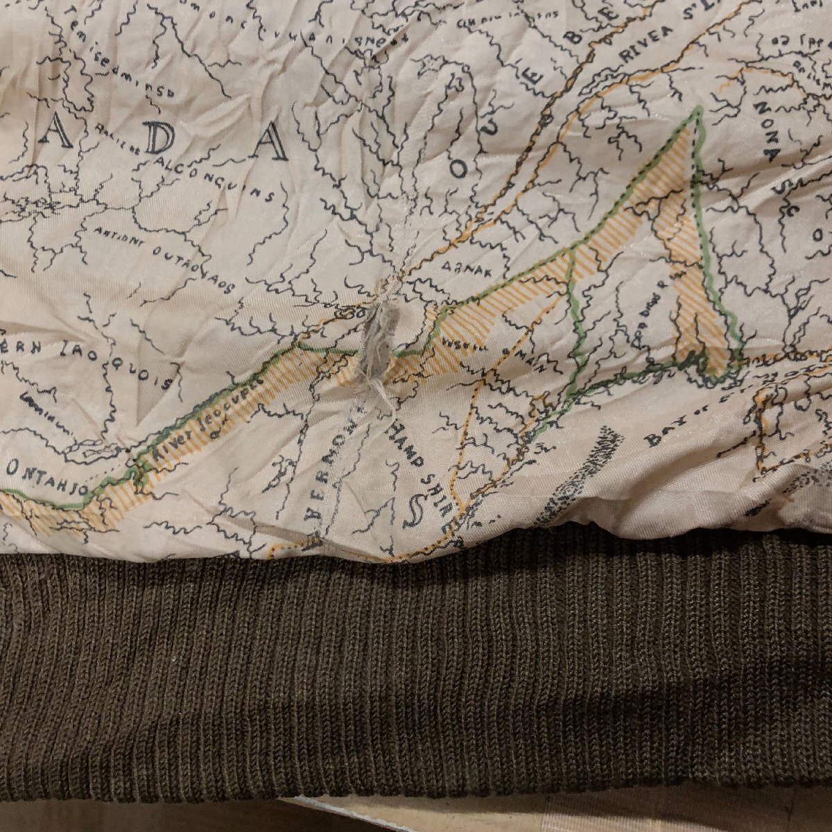 中古品です。使用感があります。各部に色褪せや擦れ、右袖リブ裏に小穴、裾裏に破れがあります。