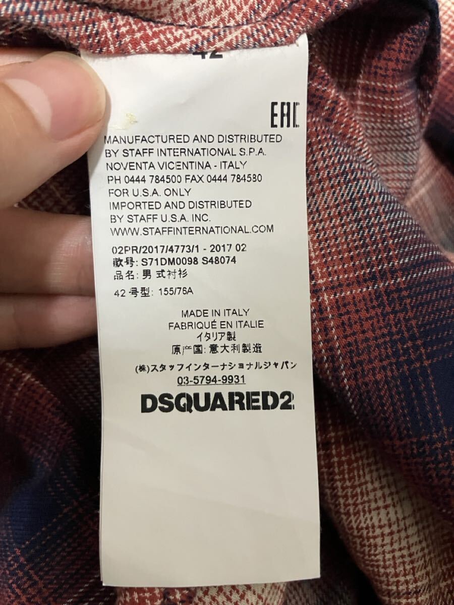 ディースクエアード DSQUARED2 ロング丈 ガウンチェックシャツです。