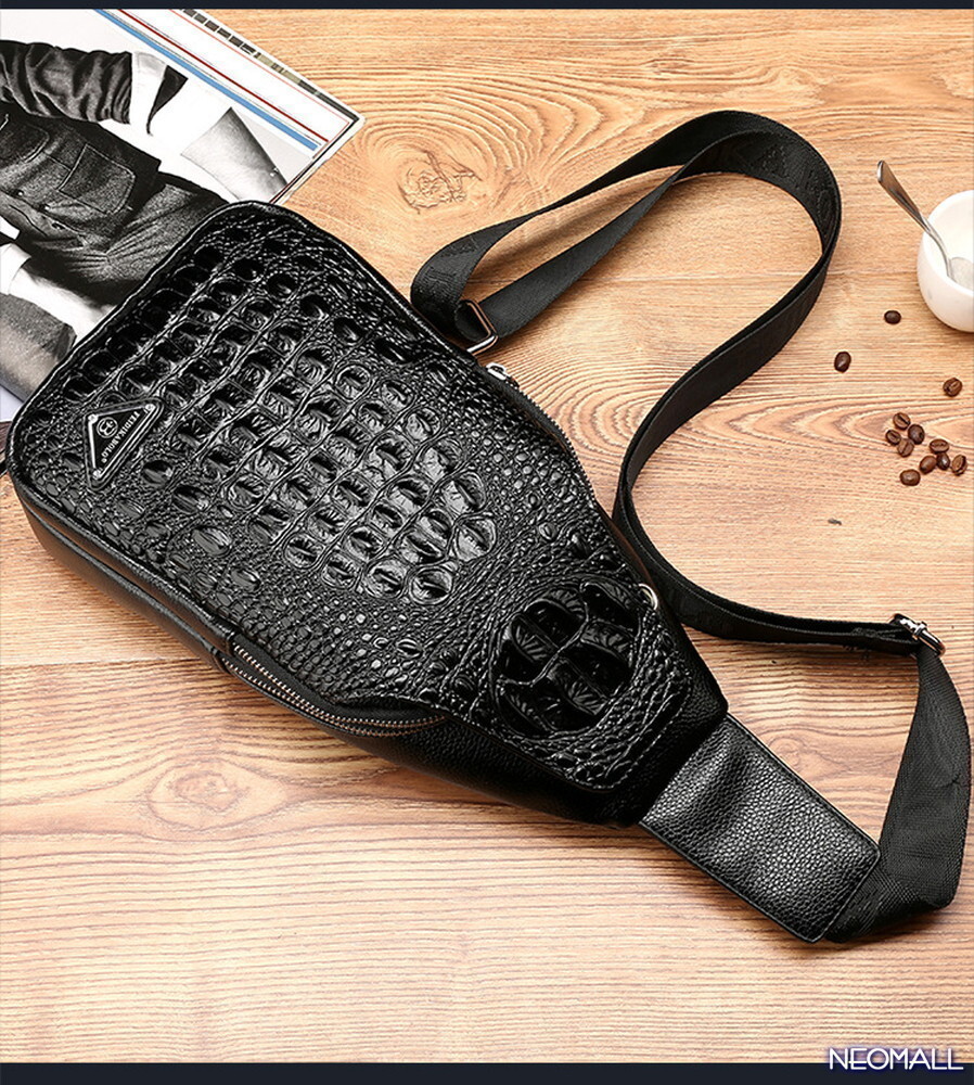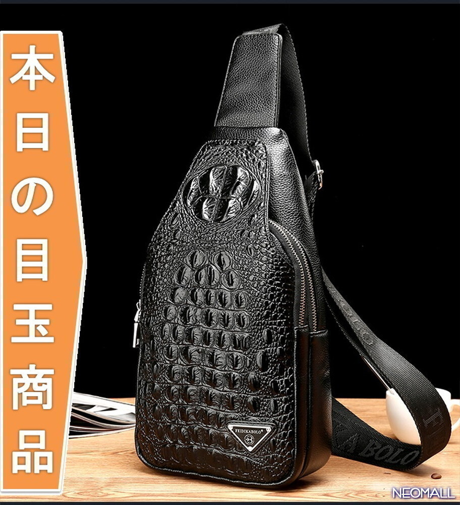 今日の目玉☆【286-B】ワニ柄 本革 クロコダイル メンズバッグ ボディバッグ 紳士 ワンショルダーバッグ 斜め掛け 鞄