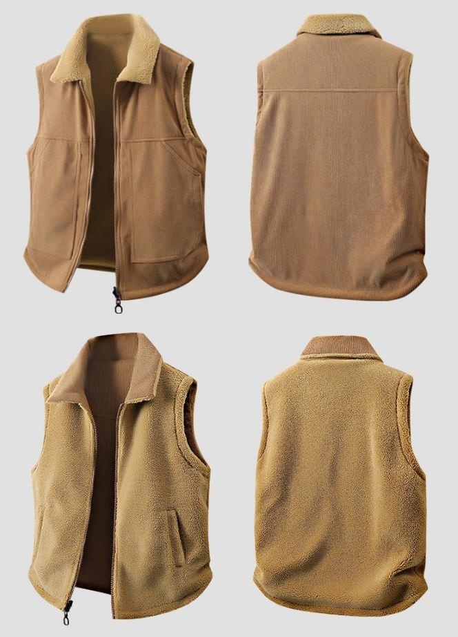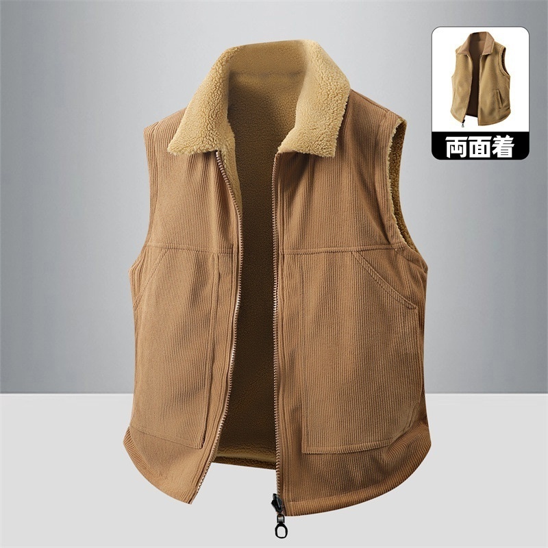 アウトドアベスト ボアベスト フリースベスト コーデュロイ・リバーシブル 袖なしジャケット 新品・メンズ  キャンプ トップス【HT2517】カーキ M