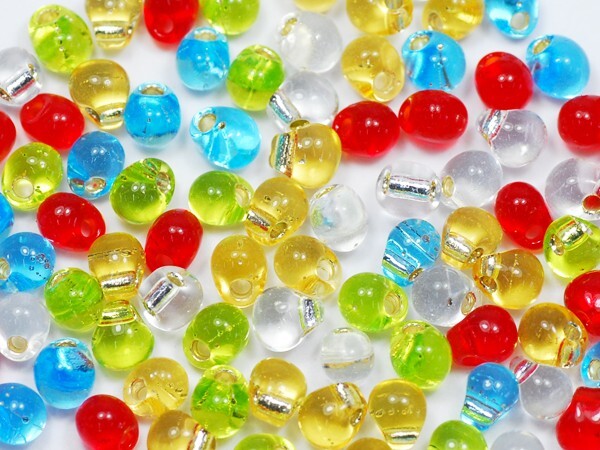 ●クリスタルインラインシルバー、ライトトパーズインラインシルバー、ライトシャム(赤)、アクアマリンインラインシルバー、ライトオリーブインラインシルバーの5色ミックスです。(ミックス具合いは一定ではありません) ●1パック:おおよそ約50コ入り 1パックの個数表記は重量換算によるパック詰めのため、1個程度の多い少ないがあります。 穴の通らないぐらいの小さいものも1個程度混ざる場合もございます。 ●サイズ:約3.4×4mm ●かたちやサイズは品質上少しばらつきがございます。 ●国産(日本製) ●材質:ガラス製 ●キャラクターもの等でよくお鼻・しっぽ・手に使用されています。