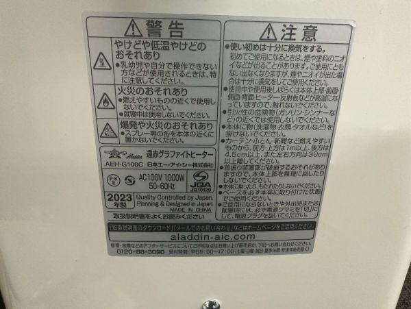 A3433-X12-319 2023年 Aladdin アラジン 電気ストーブ AEH-G100C-W 遠赤グラファイトヒーター現状品③