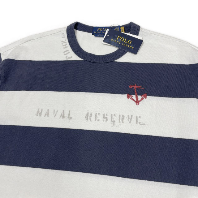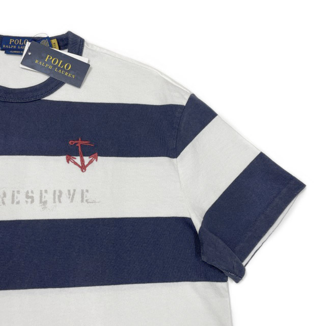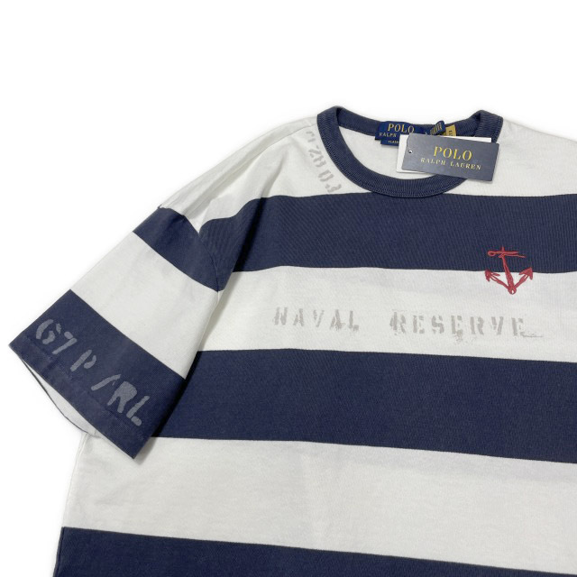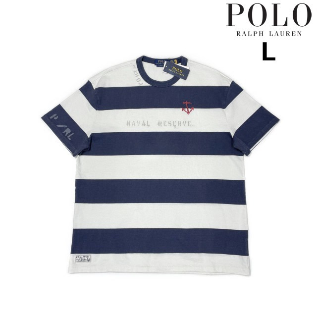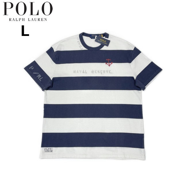 【USA購入 正規新品】POLO RALPH LAUREN ポロ ラルフローレンTシャツ 半袖 US購入 厚手 上質 刺繍 男女兼用 ストライプ(L)紺 白 ボーダー柄 190131-18