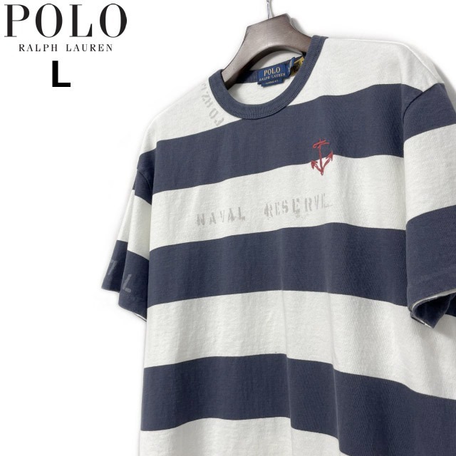 売切り【正規新品】POLO RALPH LAUREN ポロ ラルフローレン◆Tシャツ 半袖 US購入 厚手 上質 刺繍(L)紺 白 ボーダー柄 190131-18
