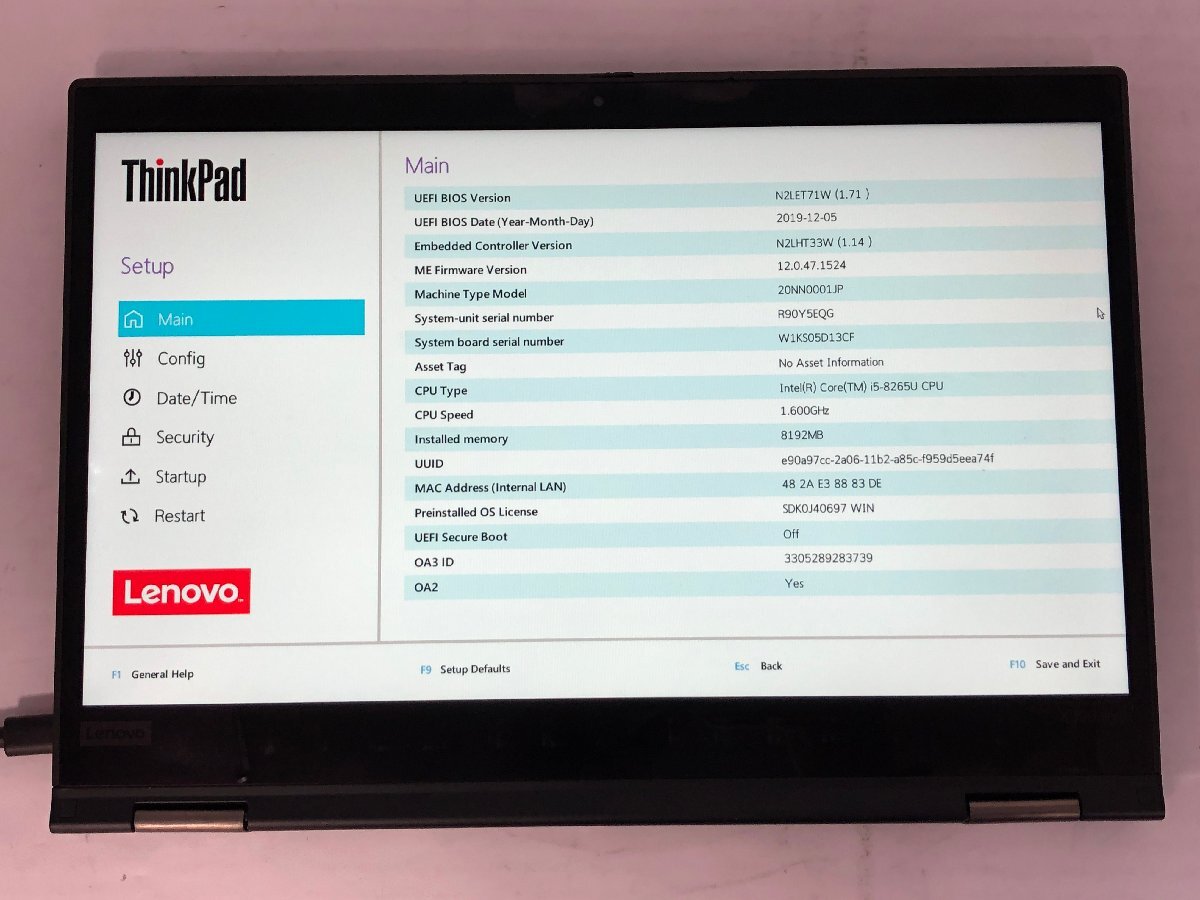 ジャンク/ LENOVO 20NN0001JP ThinkPad X390 Yoga Intel Core i5-8265U メモリ8.19GB NVME256.06GB 【K23580】