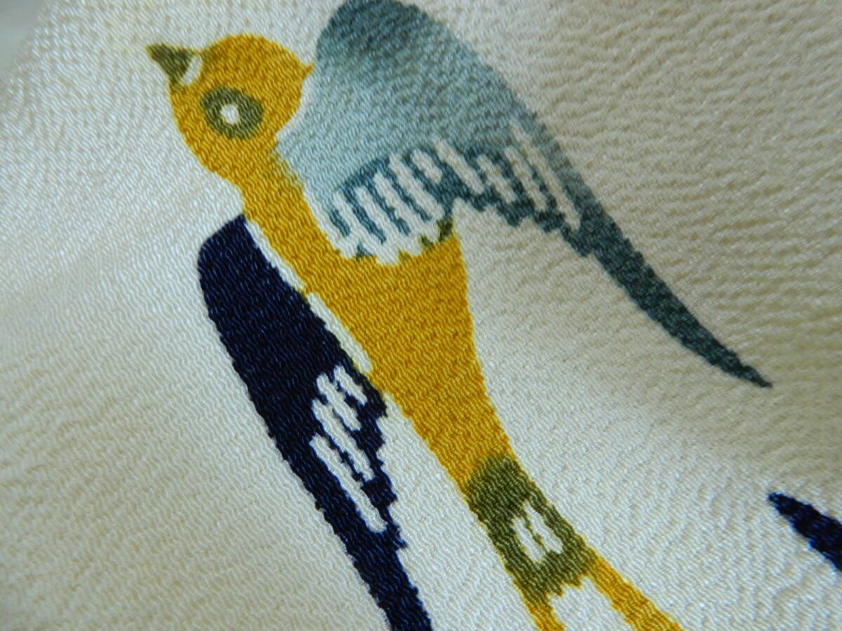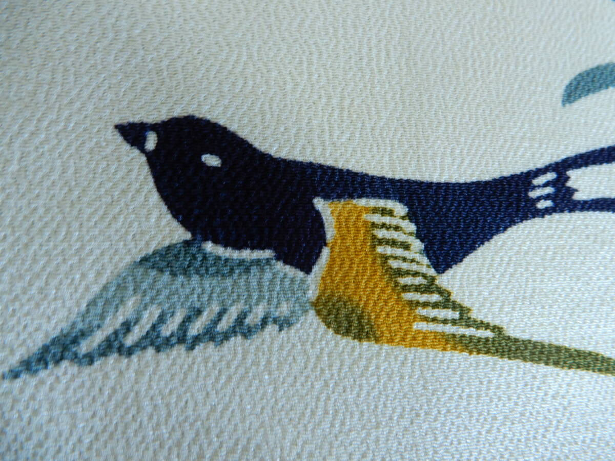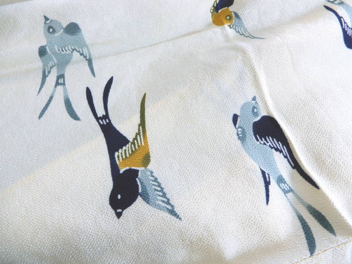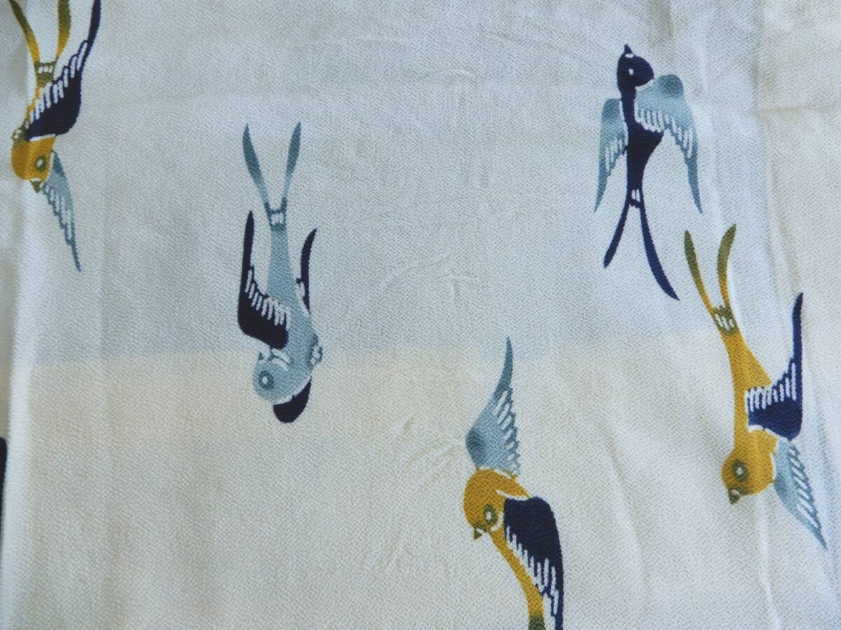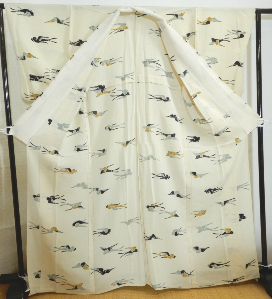 <銀の斧>正絹・縮緬地紅型染単衣着物・燕模様・顔料・ツバメ・リメイク用にも