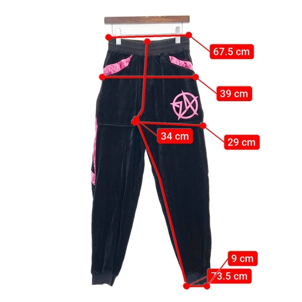 トップス実寸 着丈:68cm 肩幅:42cm 身幅:48cm 袖丈:69cm ボトムス実寸 ウエスト:67.5cm 股上:34cm 股下:73.5cm もも幅:29cm 裾幅:9cm |