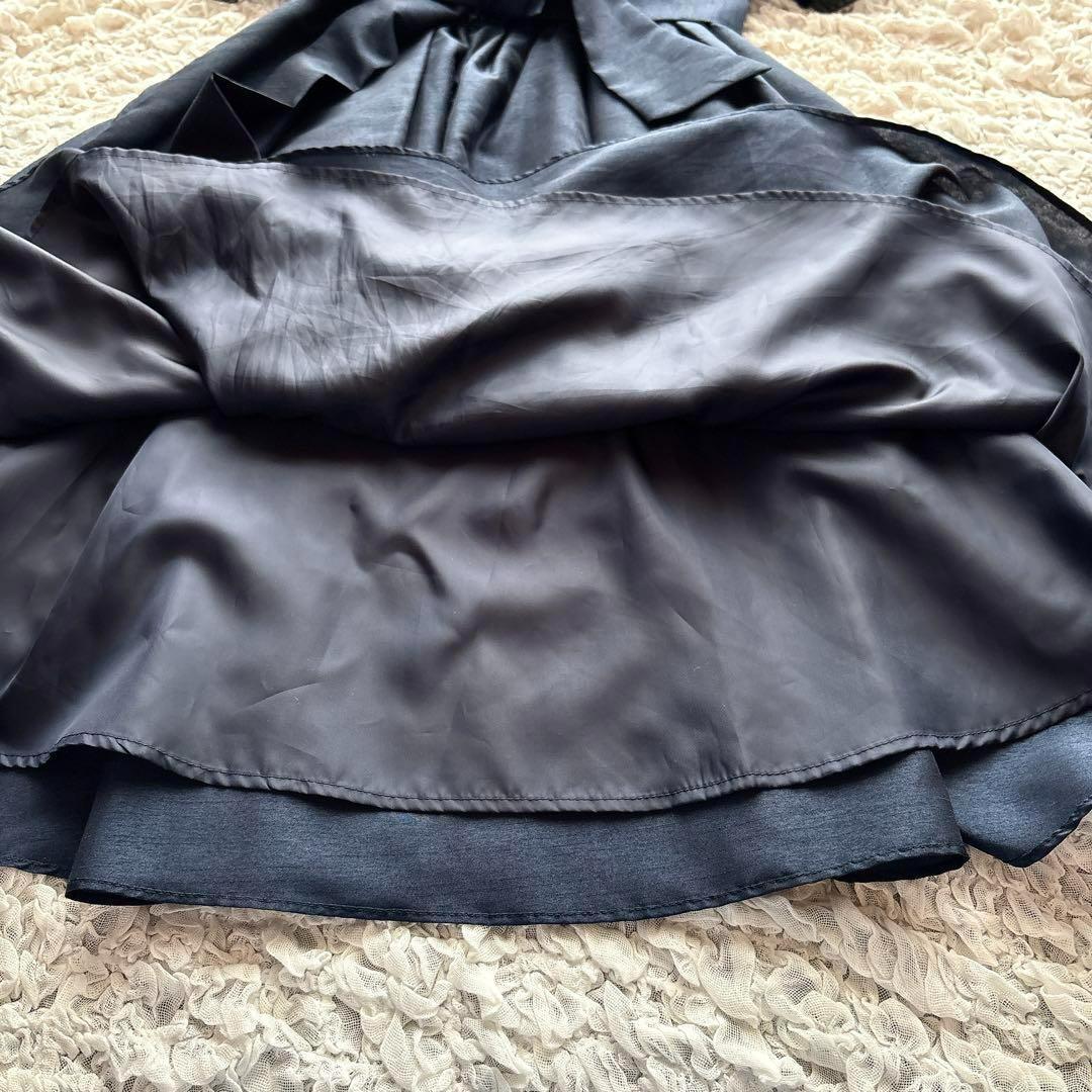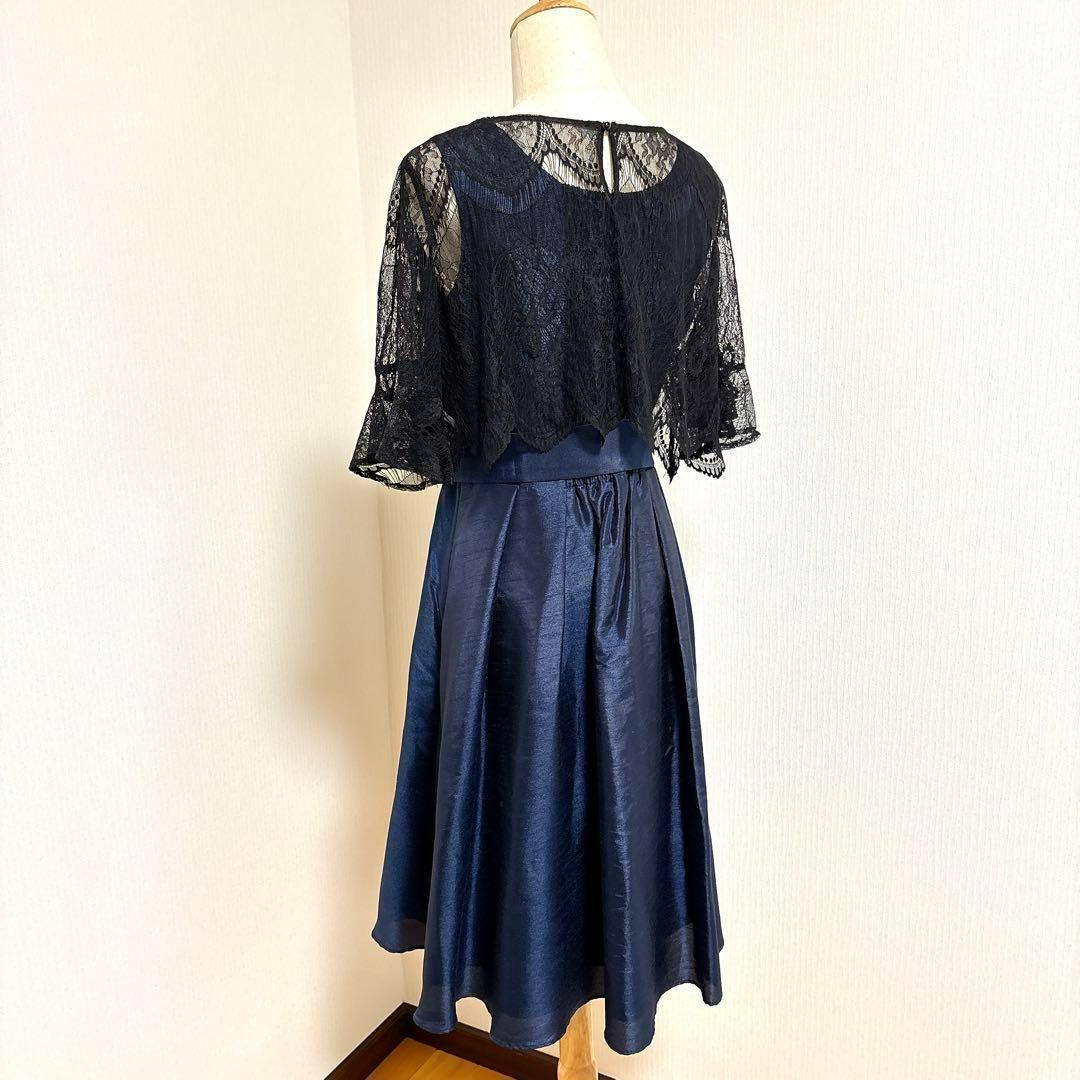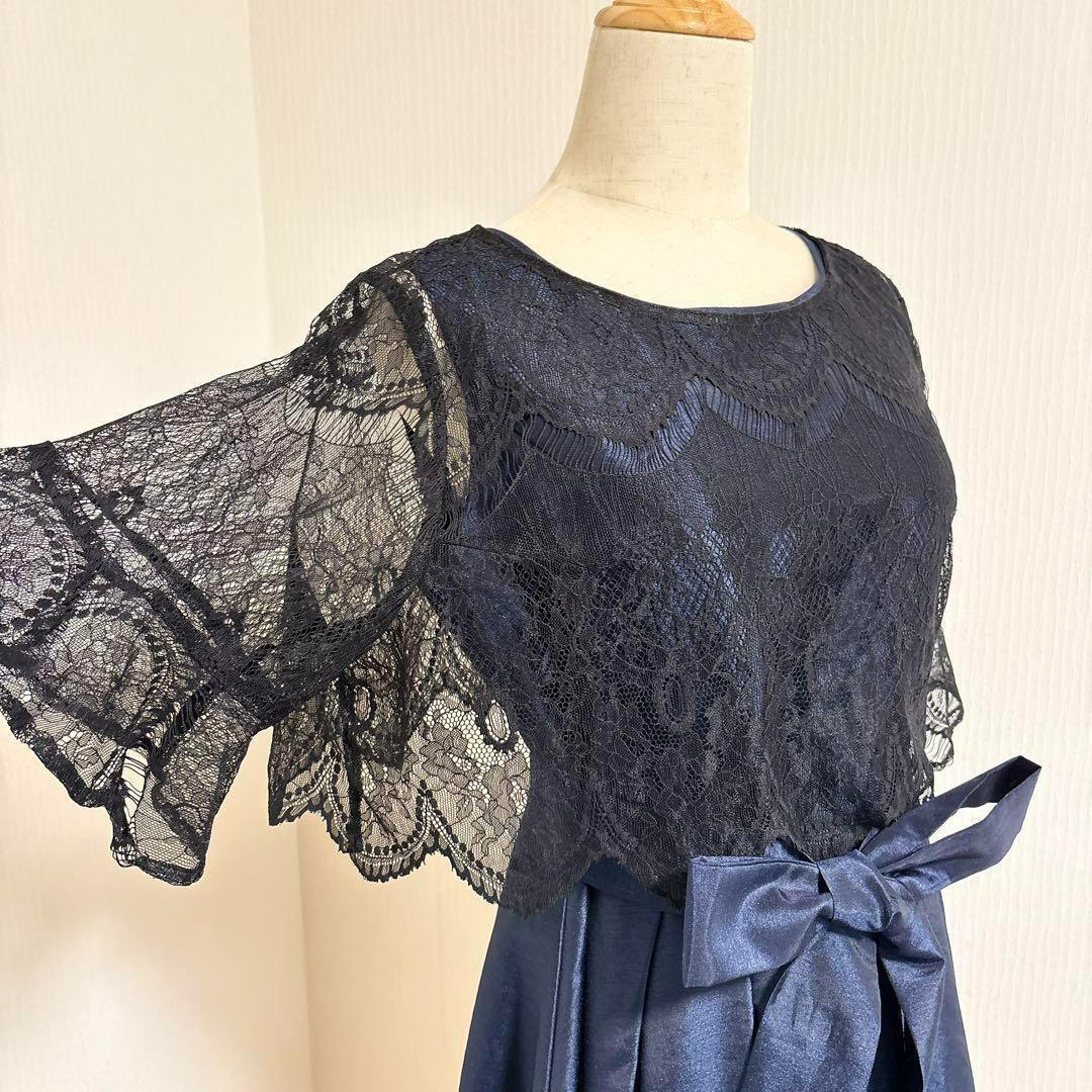 光沢のある素材で高級感あり。ほどよく透け感のあるレースカットソー(ボレロ)で上品に二の腕をカバー。バックのシャーリング部分は伸縮性があるので体にフィットしやすいかと思います◎