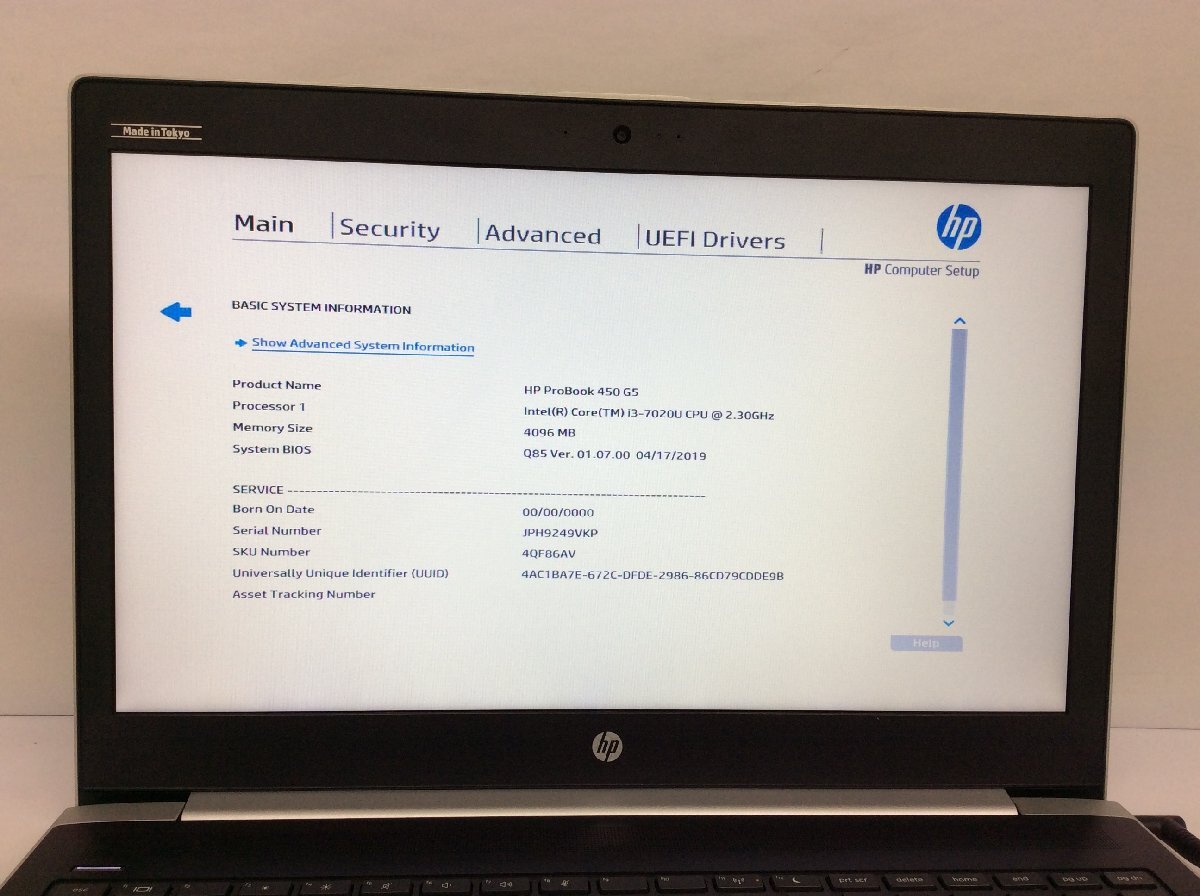 ジャンク/ HP HP ProBook 450 G5 Intel Core i3-7020U メモリ4.1GB ストレージ無し 【K23993】