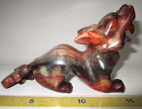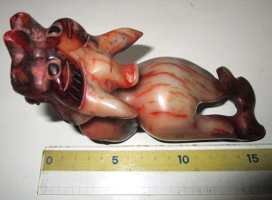 稀少 アンティーク★中国 古玩 麒麟 獅子 龍 彫刻 ネフライト 天然石 パワーストーン 置物 オブジェ 重量660g★《検》和田玉