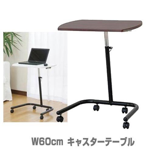 ノートPCデスク キャスター付 移動式 高さ調節可能 サイドテーブル 幅60cm 奥行40cm パソコンデスク 脇机 ソファ横 ブラウン 83748