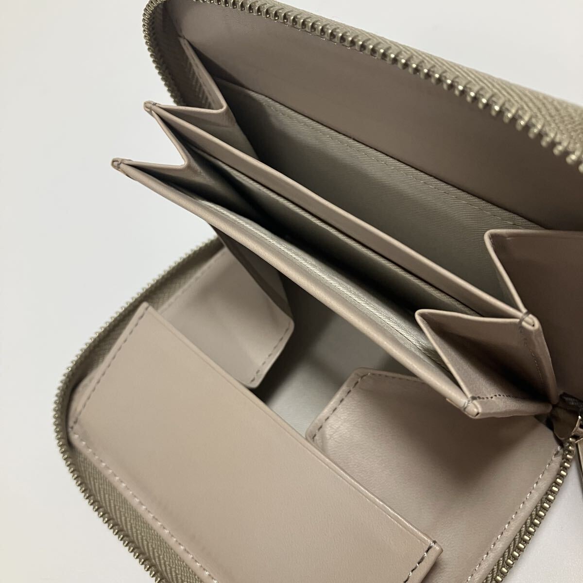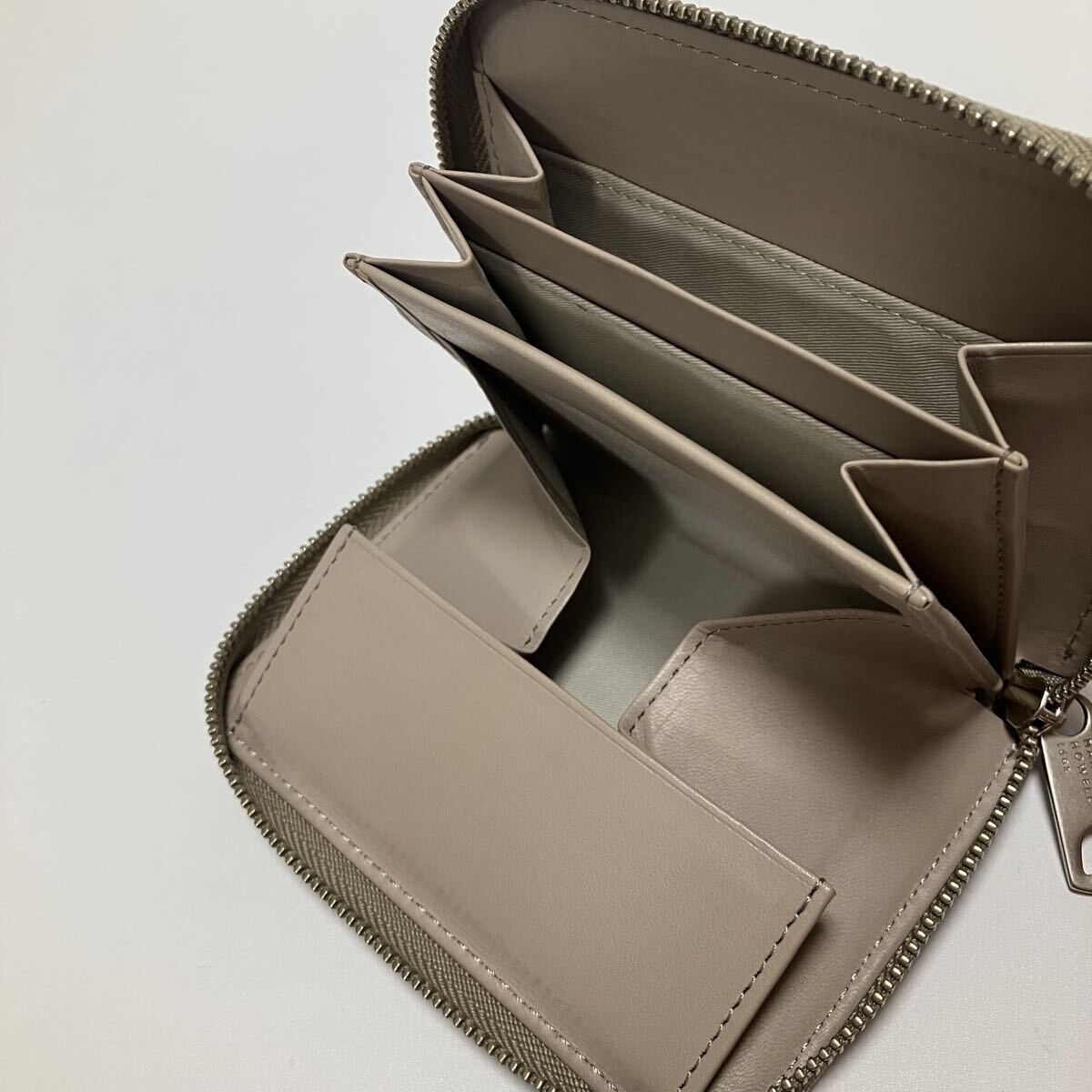 ・商品コメント:柔らかな手触りのレザーを使用したラウンドファスナー折り財布。小銭が見やすく取り出しやすいボックス型のコイン収納。ポケットへの収まりが良いコンパクトなサイズ感です。