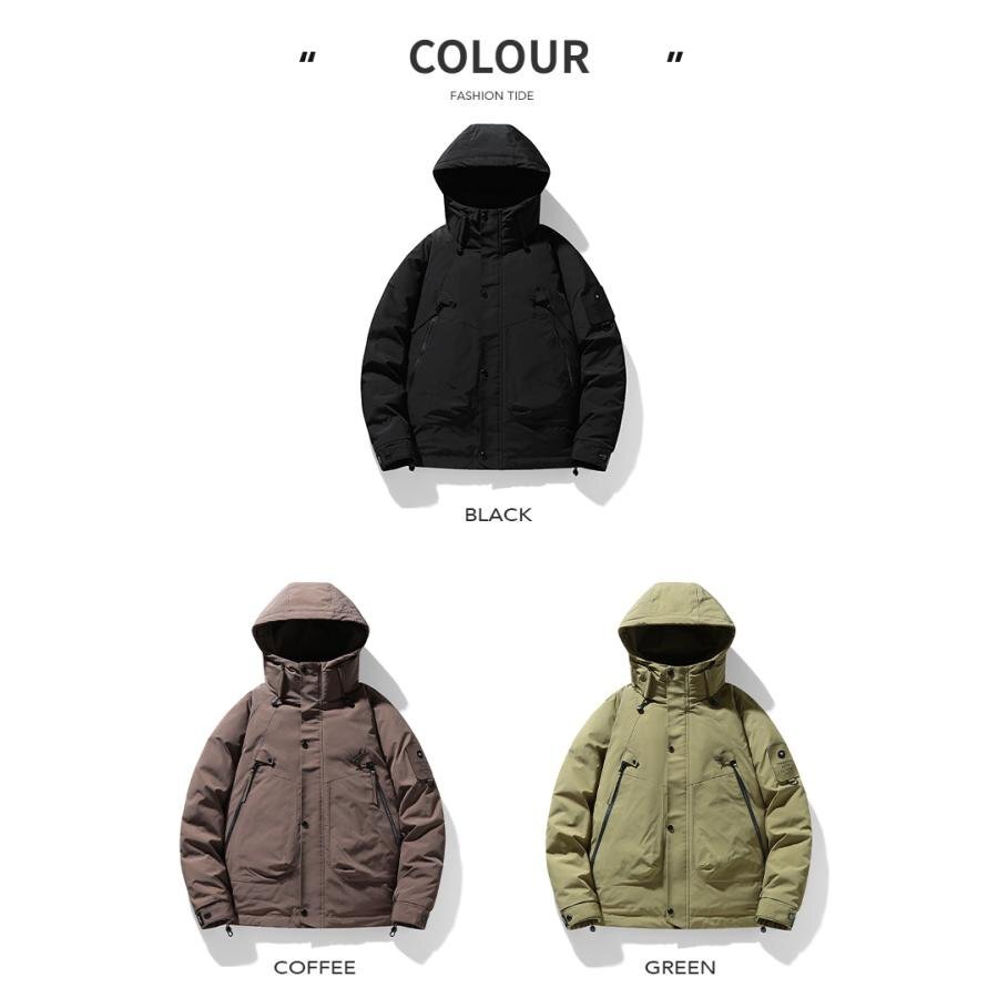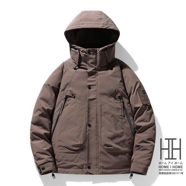 ダウンジャケット メンズ 軽量 暖かい ワンポイント フード付き おしゃれ 防風 保温 防寒対策 ボリューム感 ダウンコート アウター カジュアル アウトドア 作業