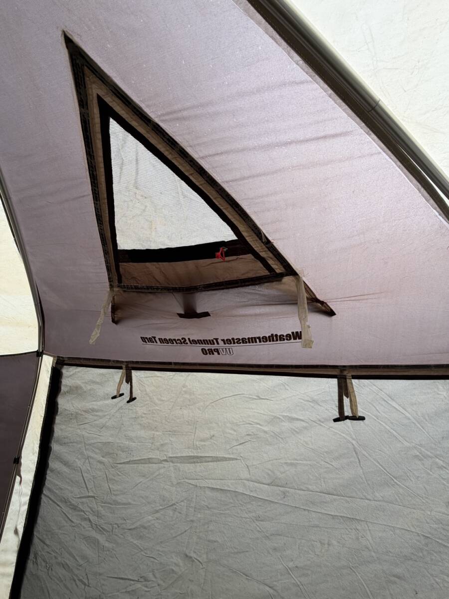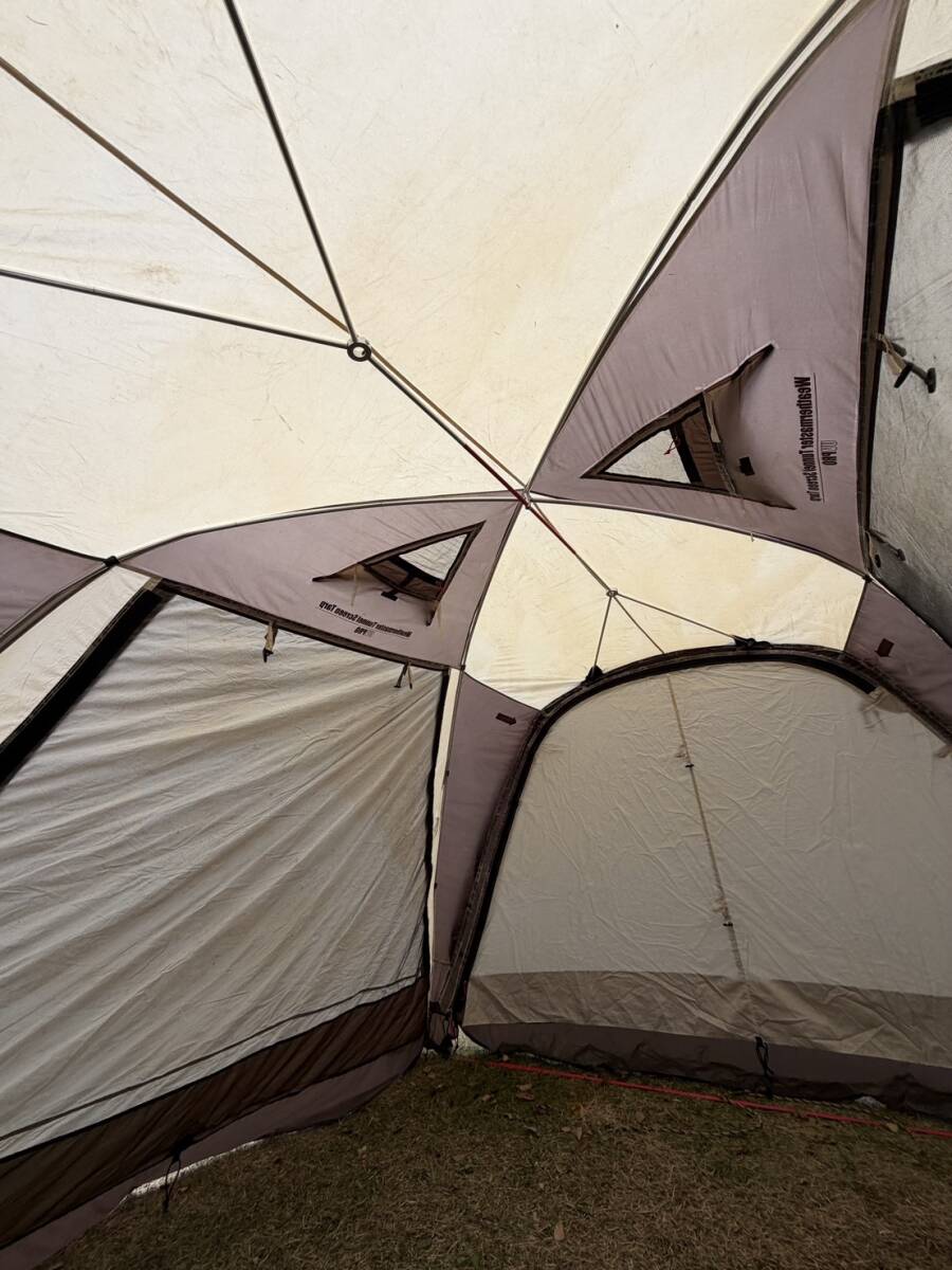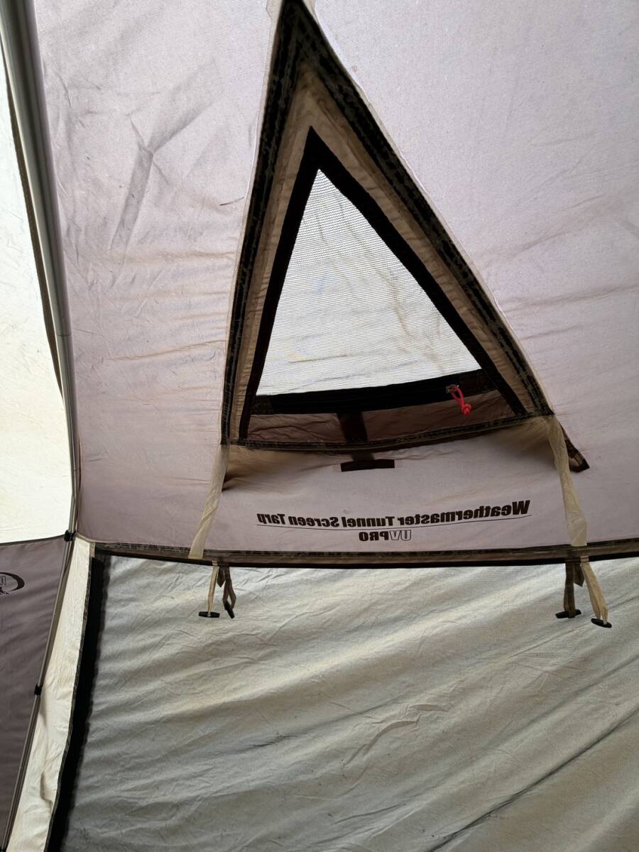 | 商品説明 | サイズは、320×300×200cmとなっていて大人4人であればちょうどよく使えます 付属品ですが、ペグ・ロープ・キャノピーポールが欠品しております。 別途ご用意下さい。 フライシートの一部にシームが浮いている箇所が御座います。 画像にてご確認下さい。 モデル:ウェザーマスタートンネルスクリーンタープ 型番:170T15650J ジョイントフラップ付き | |