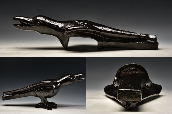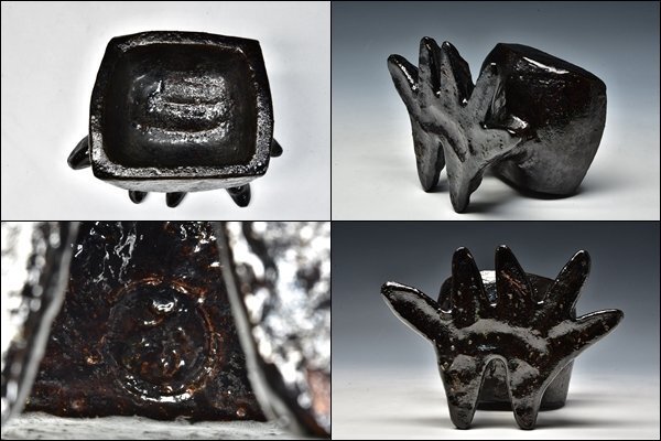 SP6230 大樋 大樋焼 歴代 黒釉 飴釉 烏 カラス 香炉 香爐 大香炉 香道具 時代箱 黒楽