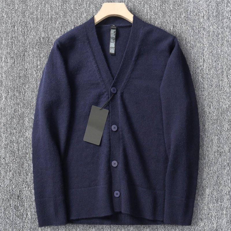 新品 DCKMANY 高級 ウール混 メンズ カーディガン 厚手 保温 秋冬 柔らかな カジュアル ビジカジ ニット カシミヤセーター 紺 T8011-XL