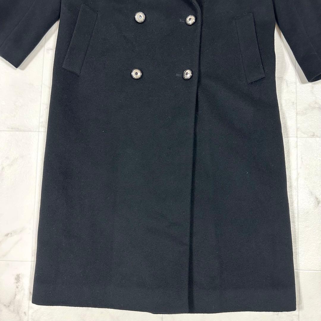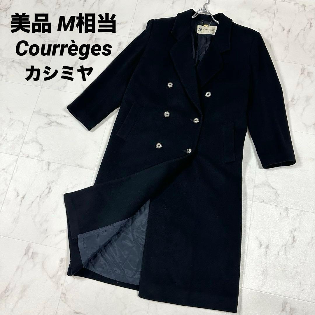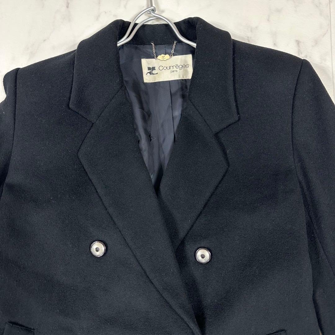 【美品】Courrges クレージュ ダブルボタン ロングコート ウール100% カシミヤ入り ブラック 黒 9AR(M相当)