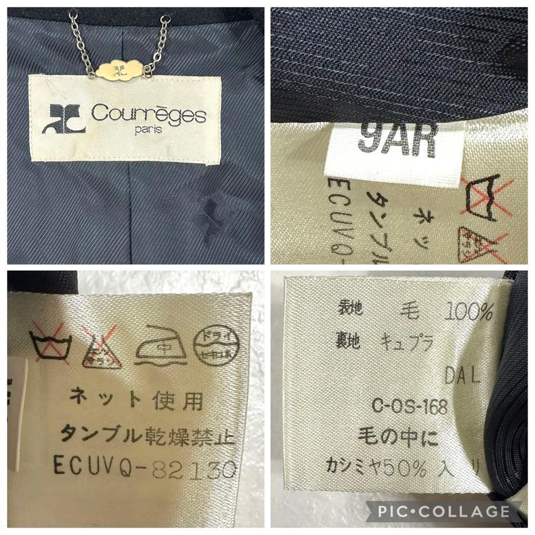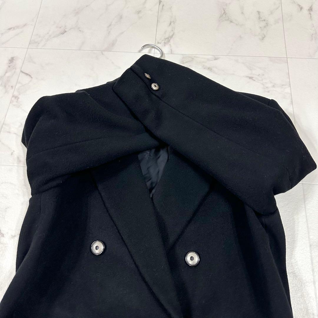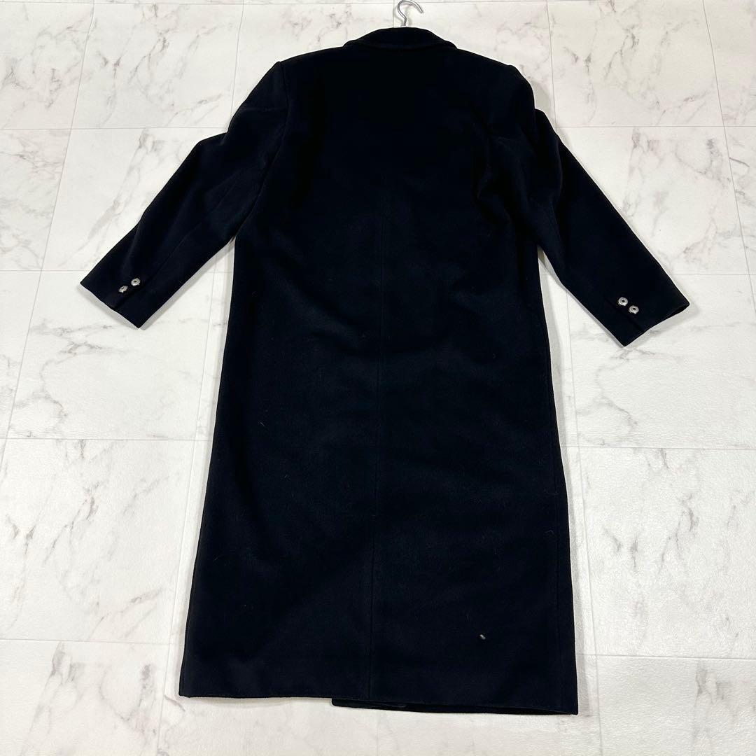 【美品】Courrges クレージュ ダブルボタン ロングコート ウール100% カシミヤ入り ブラック 黒 9AR(M相当)