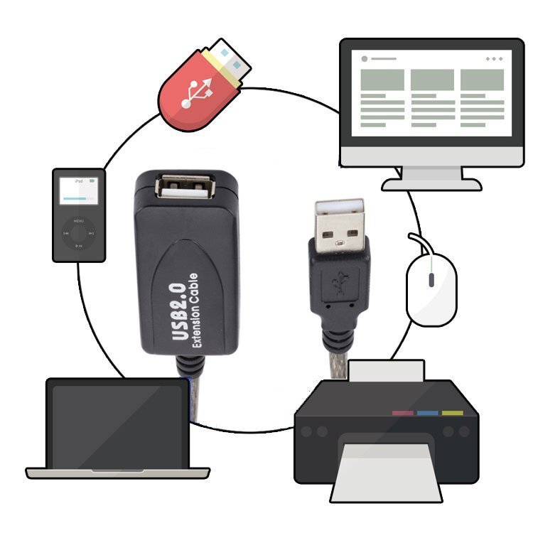 ◆USB2.0延長ケーブル 信号増幅5m延長 オス/メス USB延長ケーブル エクステンダーUSB プリンター スキャナーなどに 信号増幅補正回路内蔵 転送安定 最大20mまで USBEX5M