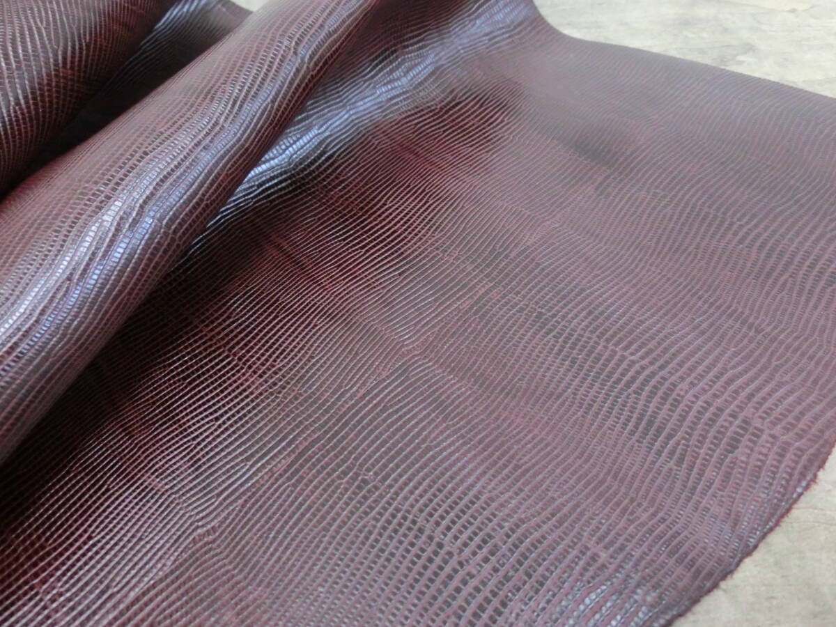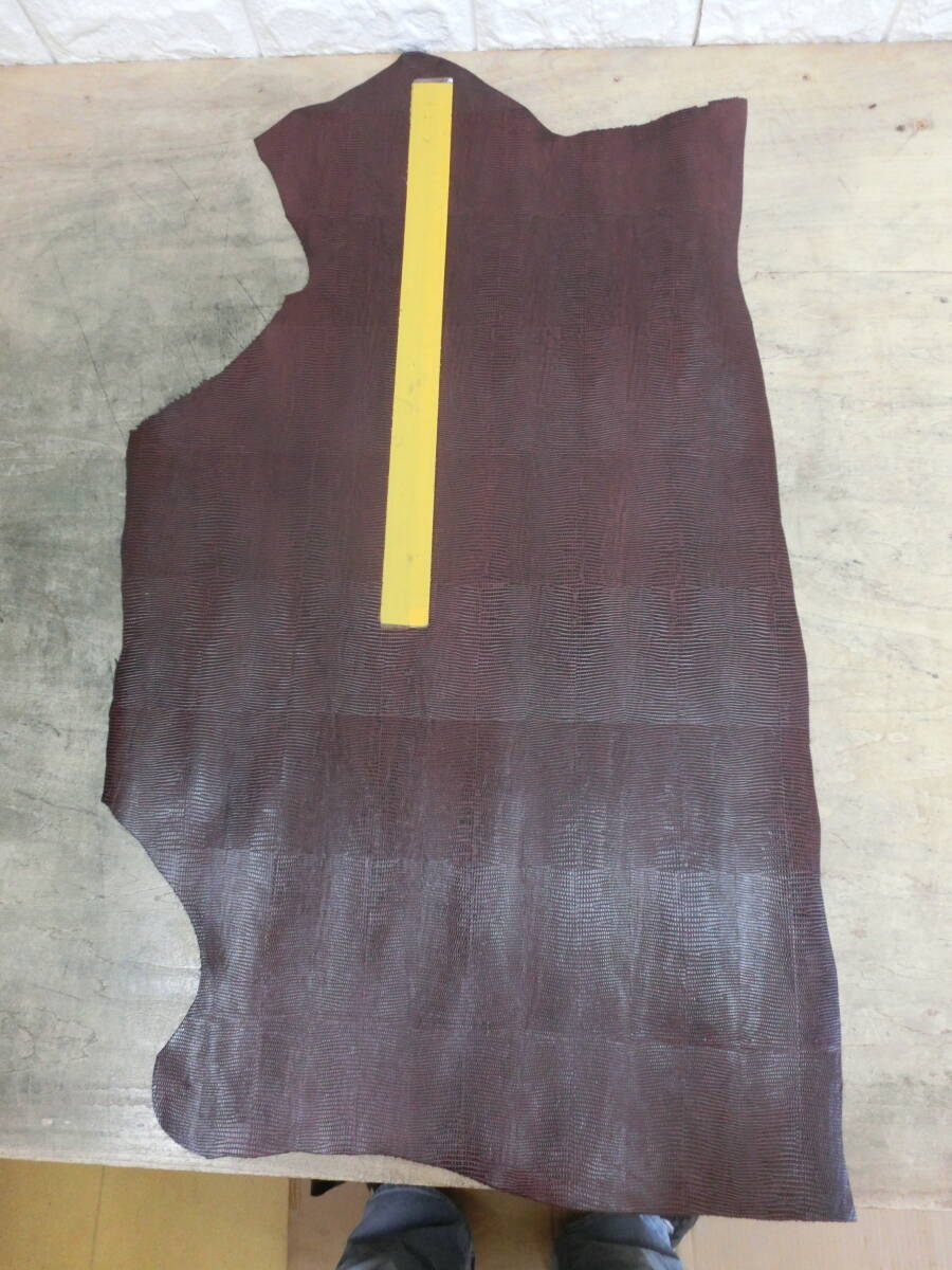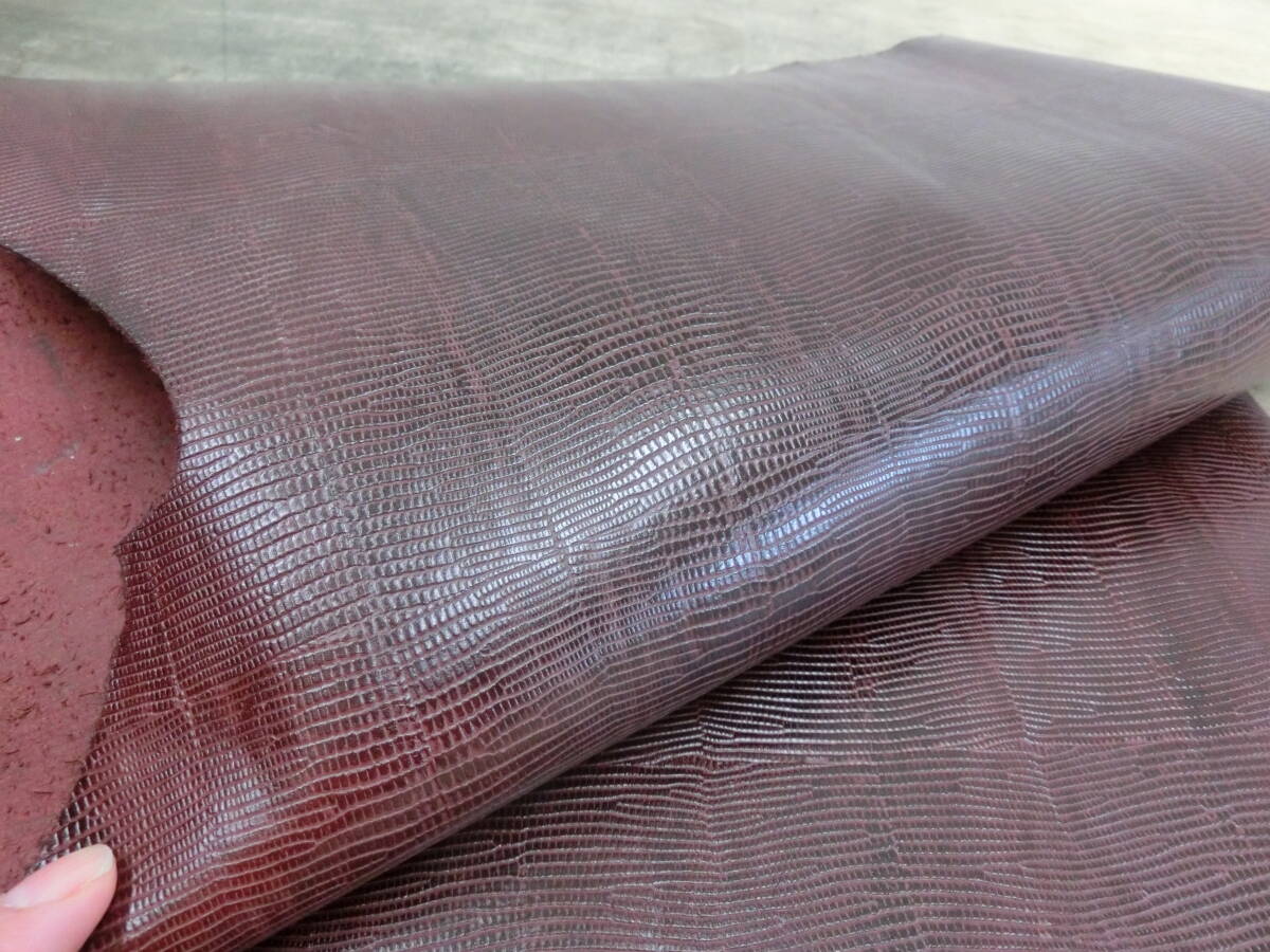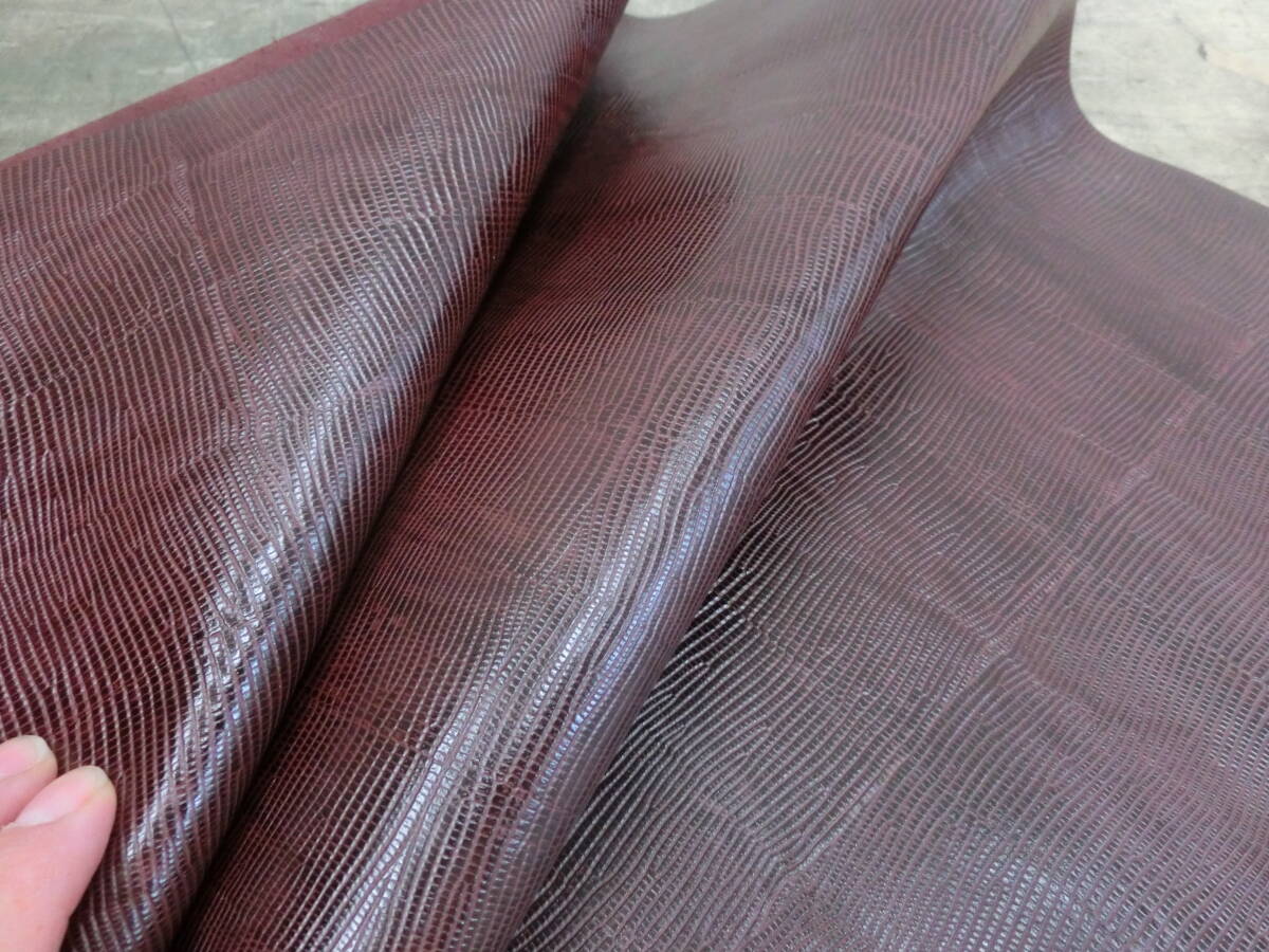 P31 ワインバーガンディ 大判裁ち形状良好 リザード型 蜥蜴型 0,9ミリ前後 ソフト表面伸び無し 最長部約89×50センチ