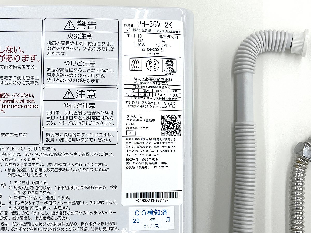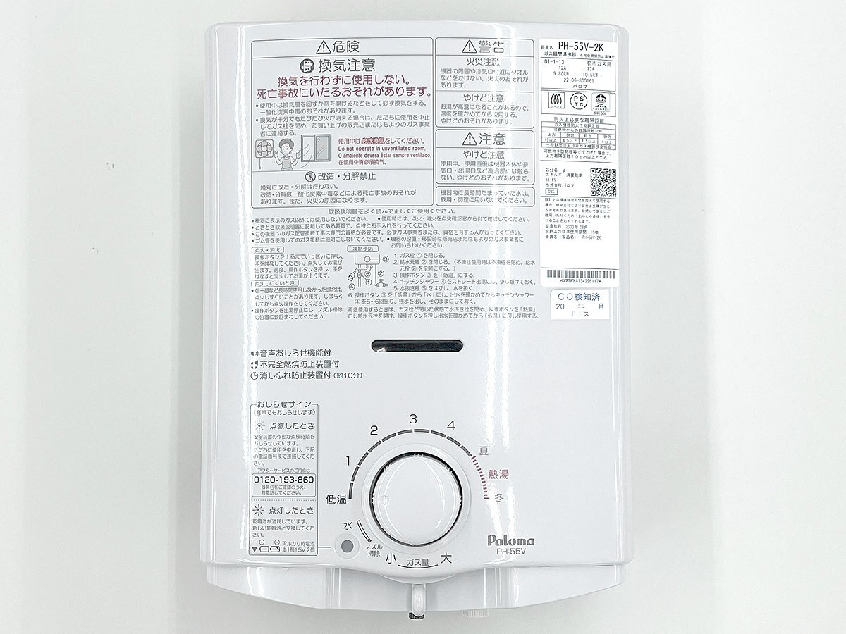Paloma/パロマ ガス瞬間湯沸器 ガス湯沸器 給湯器 PH-55V-2K 2022年製 都市ガス用 元止め式 音声おしらせ機能付 |