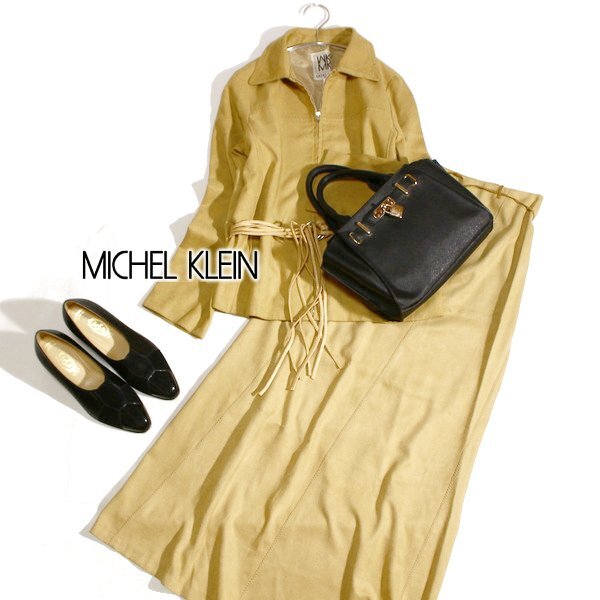 美品 MICHEL KLEIN ミッシェルクラン フェイクスウェード セットアップ 36号と38号 M 春 秋 合服 25A11