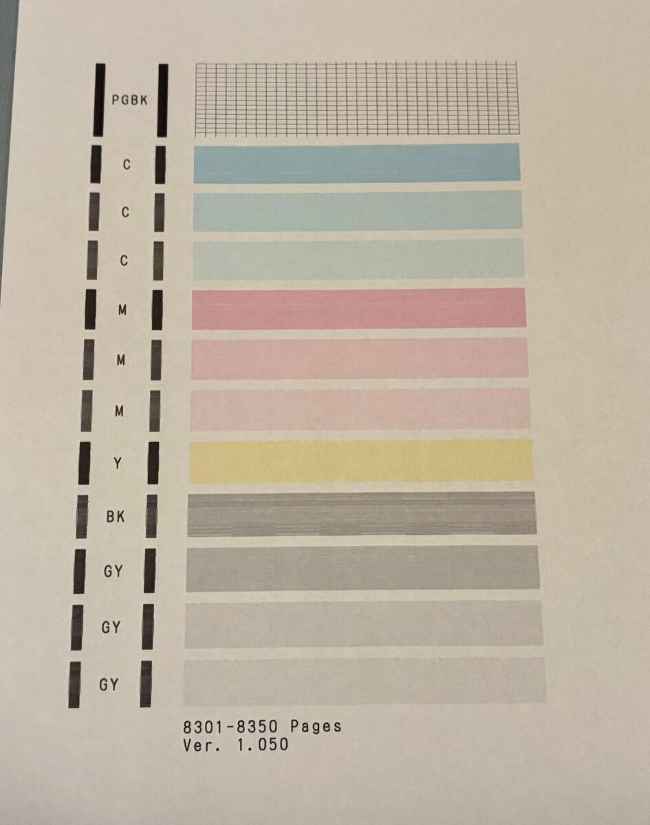 ノズルチェック印刷に若干のかすれはありますが、画像の通り