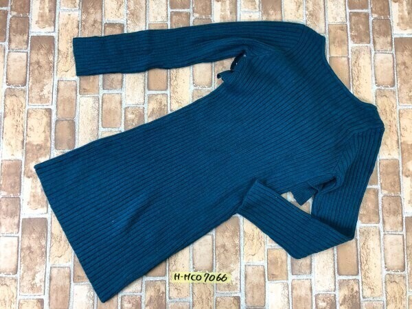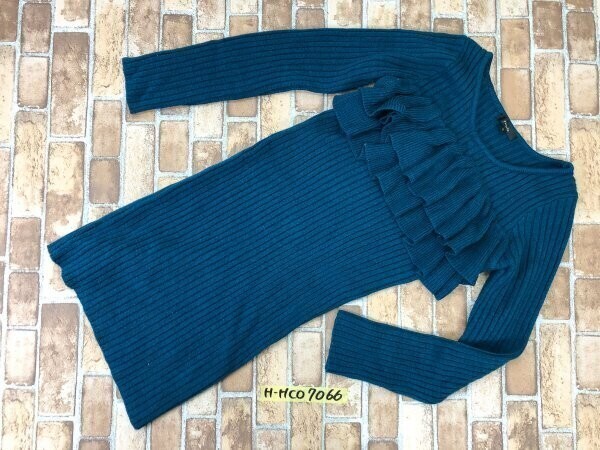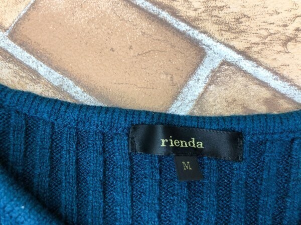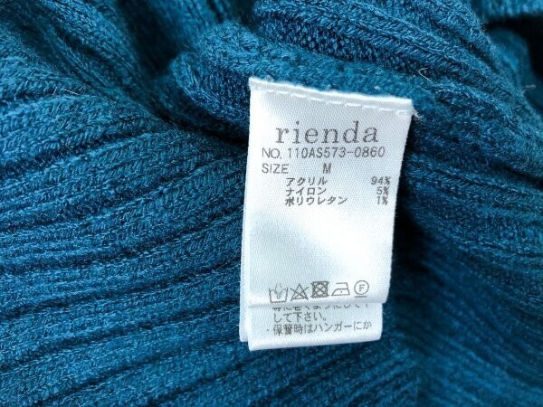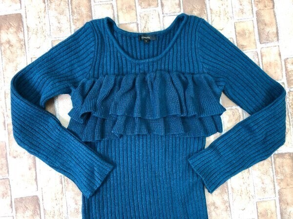 rienda リエンダ レディース 細身 フリル付き ニットワンピース M ブルーグリーン アクリル他