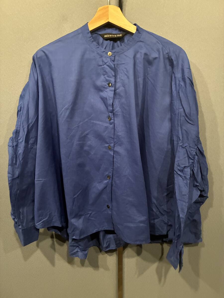 ミズイロインドのシャツです。ゆったりめのフリーサイズ仕様で、デザイン性と着回しやすさを兼ね備えた一着です。