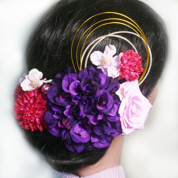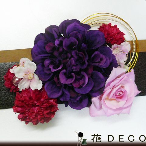 材 料: アートフラワー(ダリア バラ 菊 桜)ベリーピック 紐水引
