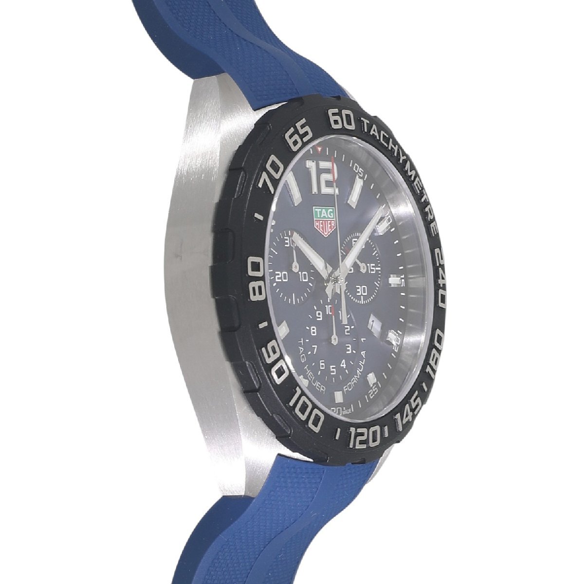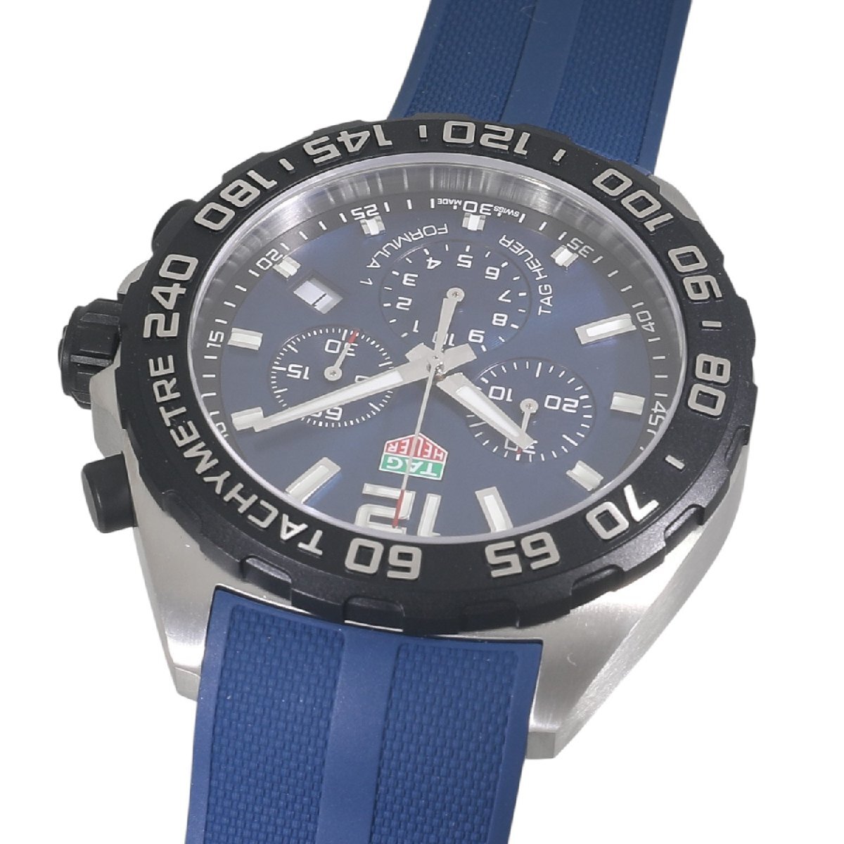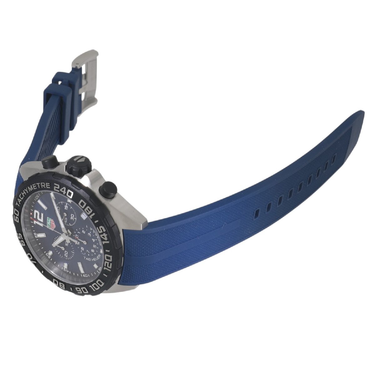 | モデルについて | 2024年の新作 モータースポーツと深い繋がりを持つタグホイヤー。こちらはカーレースの最高峰「F1」の名を冠するコレクションです。サンレイ仕上げが施された文字盤とラバーストラップは落ち着いた青で統一されております。ブラックPVDコーティングがされたタキメーターベゼルにより、スポーティで精悍な印象にまとまっています。 |