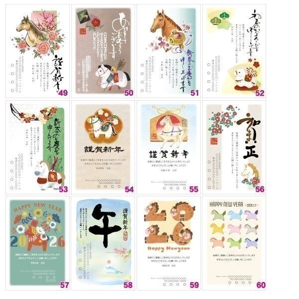 A:新しい年を迎え皆様のご健康とご多幸を心よりお祈り致します 本年もどうぞよろしくお願い申し上げます B:新しい年が一層お幸せでありますようお祈り申し上げます 本年もどうぞよろしくお願い致します C:本年も素晴らしい年となりますようお祈り申し上げます 今年もどうぞよろしくお願い致します D:新しい年が皆様にとって佳き年でありますようお祈り申し上げます E:幸多き新春を迎えられたこととお慶び申し上げます 皆様のご健康とご多幸を心よりお祈りいたします F:希望に満ちた新春をお迎えのこととお慶び申し上げます 今年もよい年でありますよう心よりお祈り申し上げます G:皆様にとって幸多き年となりますよう心からお祈り申し上げます 本年もどうぞよろしくお願い致します H:昨年は大変お世話になりました 今後とも末永くお付き合い下さいますようお願い申し上げます I:昨年中はいろいろとお世話になり心よりお礼申し上げます 今年もどうぞよろしくお願い致します J:昨年はなにかとお世話になりありがとうございました 今年もよろしくお願い申し上げます K:昨年はいろいろとご厚誼をいただき有難うございました 本年も何卒ご指導ご鞭撻の程お願い申し上げます L:今年もどうぞよろしくお願いいたします M:今年も幸多き年でありますようお祈りいたします N:本年も素晴らしい年となりますようお祈りいたします P:新住所に住まいを移し心新たに新年を迎えました 本年もどうぞよろしくお願いいたします Q:昨年は大変お世話になりありがとうございました さて誠に勝手ながら来年より皆様への年賀状によるご挨拶を控えさせていただきます これからはLINEやメールでメッセージのやりとりをさせていただければと思います 今後も末長いお付き合いをお願いいたします R:さて長年に渡り年賀状のやりとりをさせていただいておりましたが私も寄る年波には勝てず年賀状の準備が困難になってまいりました 誠に勝手ではございますが本年をもちましてどなた様にも新年のご挨拶状をご遠慮させていただきいと存じます 今後とも皆様のご健康とご多幸を心よりお祈り申し上げます S:長い間年賀状をいただきありがとうございました 誠に勝手ではございますがどなた様にも年賀状によるご挨拶はこれで最後にさせていただこうと考えております 何卒ご理解くださいますようお願い申し上げます 今後とも変わらぬお付き合いのほどよろしくお願いいたします 感謝の気持ちとともにご挨拶させていただきます T:平素は格別のお引き立てを賜り誠にありがとうございます 当社では近年の社会情勢を鑑みすべてのお取引様に対して年賀状でのご挨拶を本年で最後にさせていただくことにしました 今後はメールにてご挨拶をさせていただきます 誠に恐縮ではございますが何卒よろしくお願いいたします 本年が皆様にとって幸多き年になりますようお祈り申し上げます U:平素は一方ならぬご厚情にあずかり心より感謝申し上げます 当社ではどなた様にも本年をもちまして年賀状によるご挨拶を控えさせていただくこととなりました 今後はメールにてご挨拶させていただきますので誠に勝手ながらどうぞご理解のほどよろしくお願いいたします 本年も皆様のご健康とご活躍を心よりお祈り申し上げます V:昨年は何かとお引き立てを賜り心からお礼申し上げます 本年も何卒よろしくお願い致します W:旧年中は格別のご厚情を賜り有難く御礼申し上げます 本年も相変わらぬご指導ご鞭撻の程お願い申し上げます 本年もより一層のご愛顧をいただけますようお願い申し上げます X:旧年中は格別のお引き立てを賜り厚く御礼申し上げます 本年も倍旧のご愛顧の程お願いいたします Y:新春を迎えるにあたり旧年中のご厚情を心よりお礼申し上げます 本年もより一層のご愛顧をいただけますようお願い申し上げます Z:輝かしい新春を迎え貴社のご繁栄を心からお祈り申し上げます 旧年中に賜りました一方ならぬお引き立てに深謝いたしますと共に 本年もなお一層のご愛顧を賜りますようお願い申し上げます オリジナル文章:ご注文時にご入力ください | |