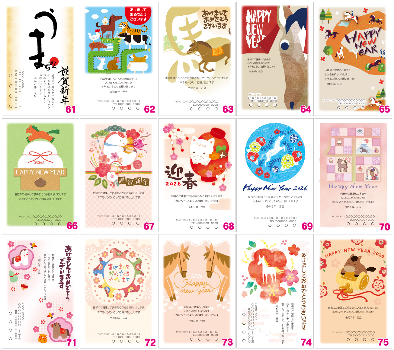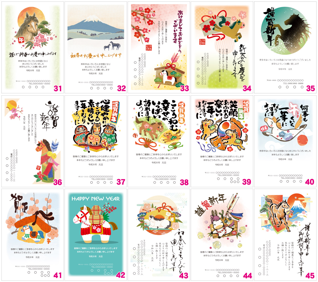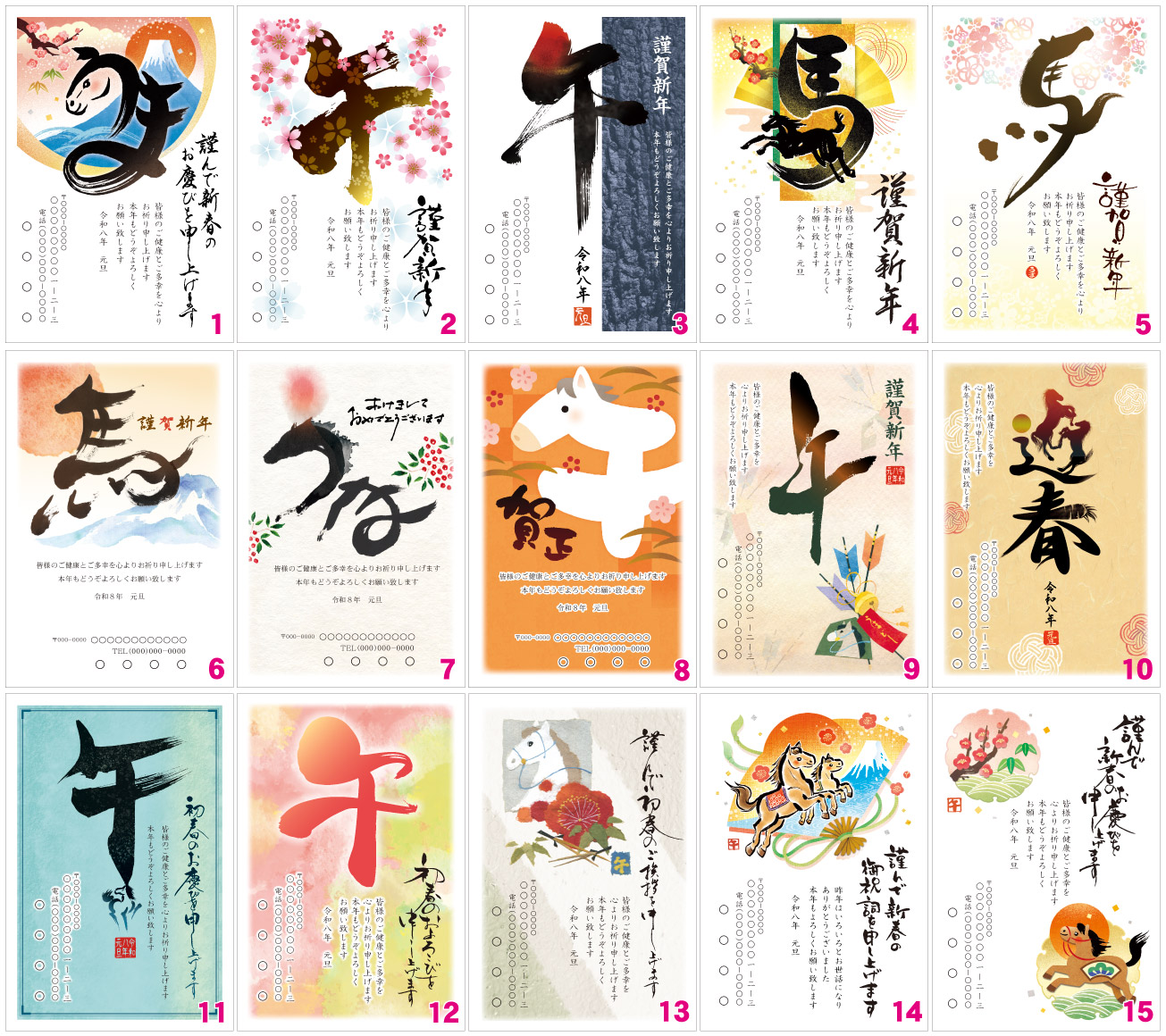 A:新しい年を迎え皆様のご健康とご多幸を心よりお祈り致します 本年もどうぞよろしくお願い申し上げます B:新しい年が一層お幸せでありますようお祈り申し上げます 本年もどうぞよろしくお願い致します C:本年も素晴らしい年となりますようお祈り申し上げます 今年もどうぞよろしくお願い致します D:新しい年が皆様にとって佳き年でありますようお祈り申し上げます E:幸多き新春を迎えられたこととお慶び申し上げます 皆様のご健康とご多幸を心よりお祈りいたします F:希望に満ちた新春をお迎えのこととお慶び申し上げます 今年もよい年でありますよう心よりお祈り申し上げます G:皆様にとって幸多き年となりますよう心からお祈り申し上げます 本年もどうぞよろしくお願い致します H:昨年は大変お世話になりました 今後とも末永くお付き合い下さいますようお願い申し上げます I:昨年中はいろいろとお世話になり心よりお礼申し上げます 今年もどうぞよろしくお願い致します J:昨年はなにかとお世話になりありがとうございました 今年もよろしくお願い申し上げます K:昨年はいろいろとご厚誼をいただき有難うございました 本年も何卒ご指導ご鞭撻の程お願い申し上げます L:今年もどうぞよろしくお願いいたします M:今年も幸多き年でありますようお祈りいたします N:本年も素晴らしい年となりますようお祈りいたします P:新住所に住まいを移し心新たに新年を迎えました 本年もどうぞよろしくお願いいたします Q:昨年は大変お世話になりありがとうございました さて誠に勝手ながら来年より皆様への年賀状によるご挨拶を控えさせていただきます これからはLINEやメールでメッセージのやりとりをさせていただければと思います 今後も末長いお付き合いをお願いいたします R:さて長年に渡り年賀状のやりとりをさせていただいておりましたが私も寄る年波には勝てず年賀状の準備が困難になってまいりました 誠に勝手ではございますが本年をもちましてどなた様にも新年のご挨拶状をご遠慮させていただきいと存じます 今後とも皆様のご健康とご多幸を心よりお祈り申し上げます S:長い間年賀状をいただきありがとうございました 誠に勝手ではございますがどなた様にも年賀状によるご挨拶はこれで最後にさせていただこうと考えております 何卒ご理解くださいますようお願い申し上げます 今後とも変わらぬお付き合いのほどよろしくお願いいたします 感謝の気持ちとともにご挨拶させていただきます T:平素は格別のお引き立てを賜り誠にありがとうございます 当社では近年の社会情勢を鑑みすべてのお取引様に対して年賀状でのご挨拶を本年で最後にさせていただくことにしました 今後はメールにてご挨拶をさせていただきます 誠に恐縮ではございますが何卒よろしくお願いいたします 本年が皆様にとって幸多き年になりますようお祈り申し上げます U:平素は一方ならぬご厚情にあずかり心より感謝申し上げます 当社ではどなた様にも本年をもちまして年賀状によるご挨拶を控えさせていただくこととなりました 今後はメールにてご挨拶させていただきますので誠に勝手ながらどうぞご理解のほどよろしくお願いいたします 本年も皆様のご健康とご活躍を心よりお祈り申し上げます V:昨年は何かとお引き立てを賜り心からお礼申し上げます 本年も何卒よろしくお願い致します W:旧年中は格別のご厚情を賜り有難く御礼申し上げます 本年も相変わらぬご指導ご鞭撻の程お願い申し上げます 本年もより一層のご愛顧をいただけますようお願い申し上げます X:旧年中は格別のお引き立てを賜り厚く御礼申し上げます 本年も倍旧のご愛顧の程お願いいたします Y:新春を迎えるにあたり旧年中のご厚情を心よりお礼申し上げます 本年もより一層のご愛顧をいただけますようお願い申し上げます Z:輝かしい新春を迎え貴社のご繁栄を心からお祈り申し上げます 旧年中に賜りました一方ならぬお引き立てに深謝いたしますと共に 本年もなお一層のご愛顧を賜りますようお願い申し上げます オリジナル文章:ご注文時にご入力ください | |