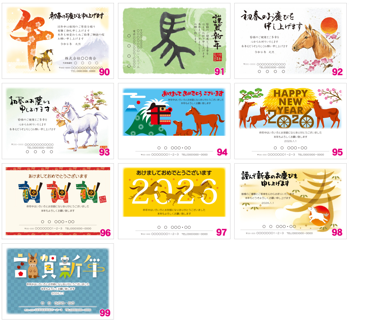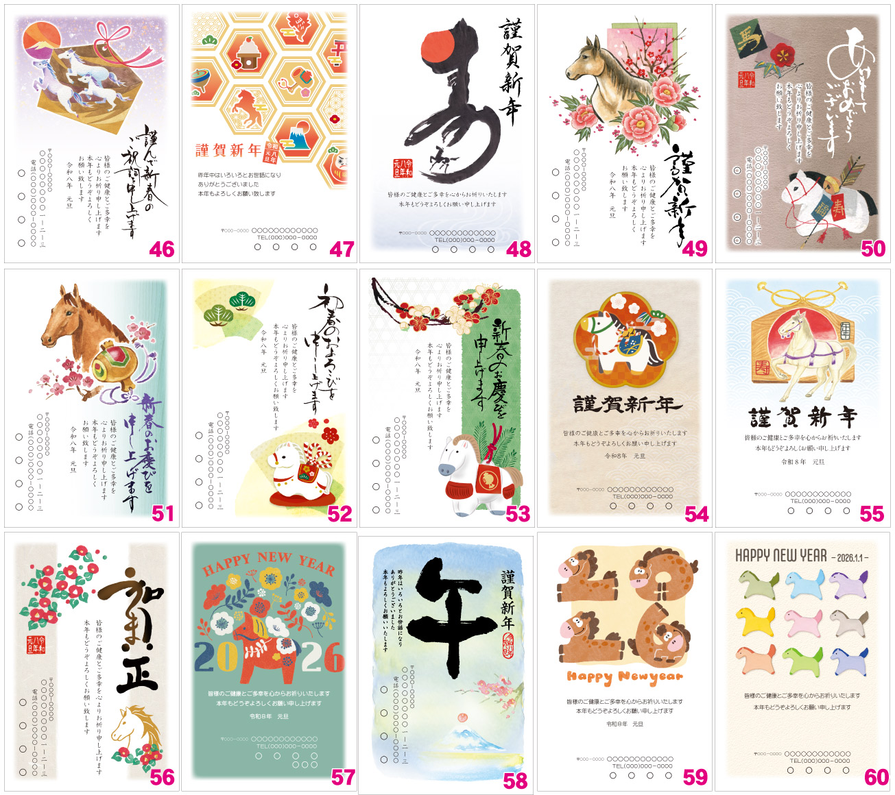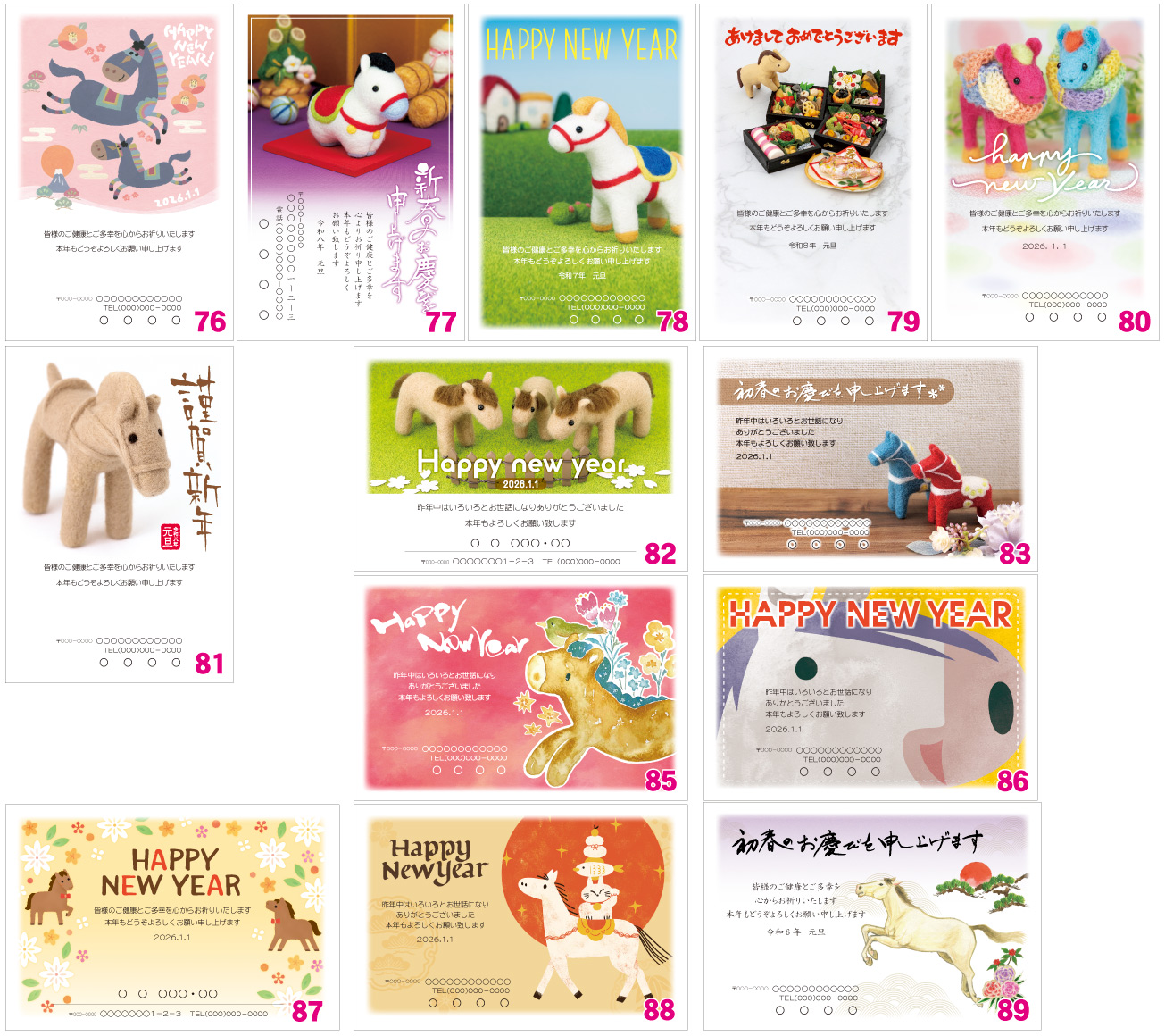 A:新しい年を迎え皆様のご健康とご多幸を心よりお祈り致します 本年もどうぞよろしくお願い申し上げます B:新しい年が一層お幸せでありますようお祈り申し上げます 本年もどうぞよろしくお願い致します C:本年も素晴らしい年となりますようお祈り申し上げます 今年もどうぞよろしくお願い致します D:新しい年が皆様にとって佳き年でありますようお祈り申し上げます E:幸多き新春を迎えられたこととお慶び申し上げます 皆様のご健康とご多幸を心よりお祈りいたします F:希望に満ちた新春をお迎えのこととお慶び申し上げます 今年もよい年でありますよう心よりお祈り申し上げます G:皆様にとって幸多き年となりますよう心からお祈り申し上げます 本年もどうぞよろしくお願い致します H:昨年は大変お世話になりました 今後とも末永くお付き合い下さいますようお願い申し上げます I:昨年中はいろいろとお世話になり心よりお礼申し上げます 今年もどうぞよろしくお願い致します J:昨年はなにかとお世話になりありがとうございました 今年もよろしくお願い申し上げます K:昨年はいろいろとご厚誼をいただき有難うございました 本年も何卒ご指導ご鞭撻の程お願い申し上げます L:今年もどうぞよろしくお願いいたします M:今年も幸多き年でありますようお祈りいたします N:本年も素晴らしい年となりますようお祈りいたします P:新住所に住まいを移し心新たに新年を迎えました 本年もどうぞよろしくお願いいたします Q:昨年は大変お世話になりありがとうございました さて誠に勝手ながら来年より皆様への年賀状によるご挨拶を控えさせていただきます これからはLINEやメールでメッセージのやりとりをさせていただければと思います 今後も末長いお付き合いをお願いいたします R:さて長年に渡り年賀状のやりとりをさせていただいておりましたが私も寄る年波には勝てず年賀状の準備が困難になってまいりました 誠に勝手ではございますが本年をもちましてどなた様にも新年のご挨拶状をご遠慮させていただきいと存じます 今後とも皆様のご健康とご多幸を心よりお祈り申し上げます S:長い間年賀状をいただきありがとうございました 誠に勝手ではございますがどなた様にも年賀状によるご挨拶はこれで最後にさせていただこうと考えております 何卒ご理解くださいますようお願い申し上げます 今後とも変わらぬお付き合いのほどよろしくお願いいたします 感謝の気持ちとともにご挨拶させていただきます T:平素は格別のお引き立てを賜り誠にありがとうございます 当社では近年の社会情勢を鑑みすべてのお取引様に対して年賀状でのご挨拶を本年で最後にさせていただくことにしました 今後はメールにてご挨拶をさせていただきます 誠に恐縮ではございますが何卒よろしくお願いいたします 本年が皆様にとって幸多き年になりますようお祈り申し上げます U:平素は一方ならぬご厚情にあずかり心より感謝申し上げます 当社ではどなた様にも本年をもちまして年賀状によるご挨拶を控えさせていただくこととなりました 今後はメールにてご挨拶させていただきますので誠に勝手ながらどうぞご理解のほどよろしくお願いいたします 本年も皆様のご健康とご活躍を心よりお祈り申し上げます V:昨年は何かとお引き立てを賜り心からお礼申し上げます 本年も何卒よろしくお願い致します W:旧年中は格別のご厚情を賜り有難く御礼申し上げます 本年も相変わらぬご指導ご鞭撻の程お願い申し上げます 本年もより一層のご愛顧をいただけますようお願い申し上げます X:旧年中は格別のお引き立てを賜り厚く御礼申し上げます 本年も倍旧のご愛顧の程お願いいたします Y:新春を迎えるにあたり旧年中のご厚情を心よりお礼申し上げます 本年もより一層のご愛顧をいただけますようお願い申し上げます Z:輝かしい新春を迎え貴社のご繁栄を心からお祈り申し上げます 旧年中に賜りました一方ならぬお引き立てに深謝いたしますと共に 本年もなお一層のご愛顧を賜りますようお願い申し上げます オリジナル文章:ご注文時にご入力ください | |