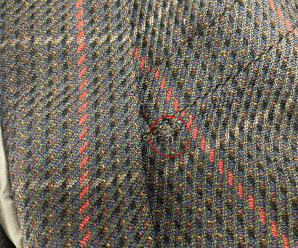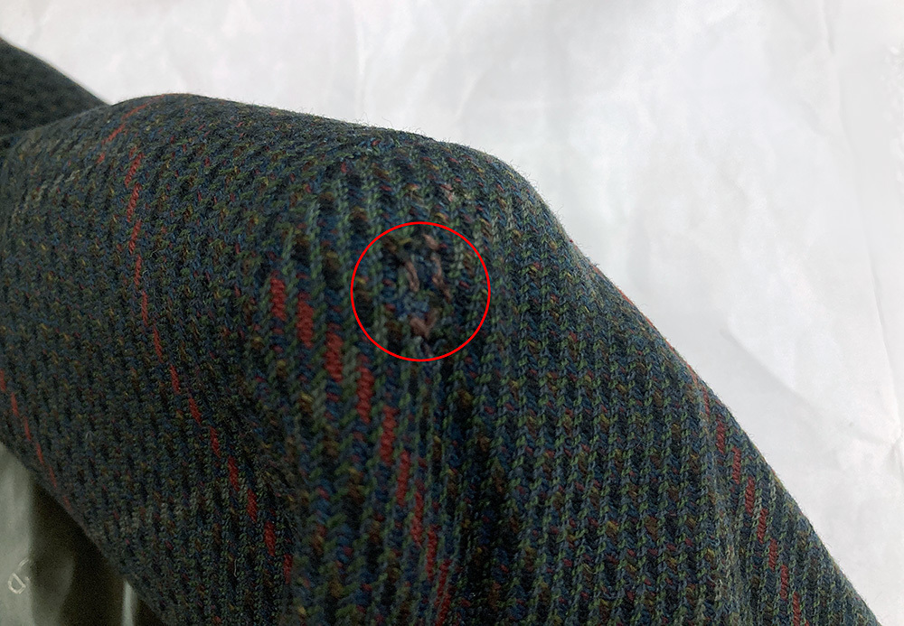 左胸ポケット下と左肩に直し痕ございます。画像5-6枚目ご確認ください。